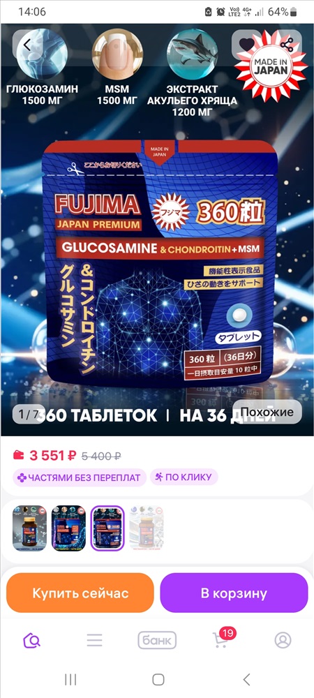 Закупка просто находка для любителя качественных БАДов!!! У коллагена вкус нормальный, с легким напоминанием о вкусе морепродуктов, пью неделю, колено стало меньше беспокоить. Ароматизатор заказала на подарок родственникам, муж сказал, что ему в машину тоже такой надо (цена на WB 611 рублей) Глюкозамин +хондроитин заказала мужу, как дополнение к новогоднему подарку, сейчас посмотрела цену на WB и сразу принялась писать отзыв, потому что у Пчелки в закупке он мне обошелся в 1512, а на маркетплейсе 3551 (скрин прилагаю)- это больше, чем в два раза!!! Янина, спасибо!! Я теперь постоянный преданный участник этой закупки!!!