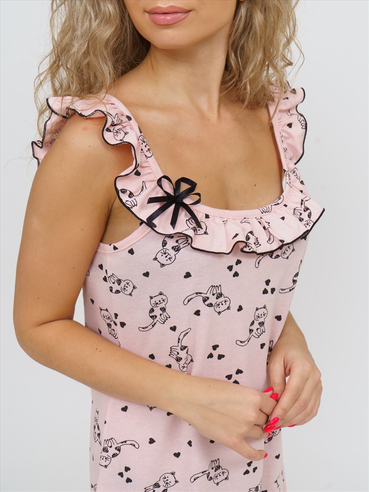 Ночная сорочка на бретелях с отделкой и небольшим разрезом из натурального хлопкового полотна высокого качества. Спать в ней удобно и комфортно.