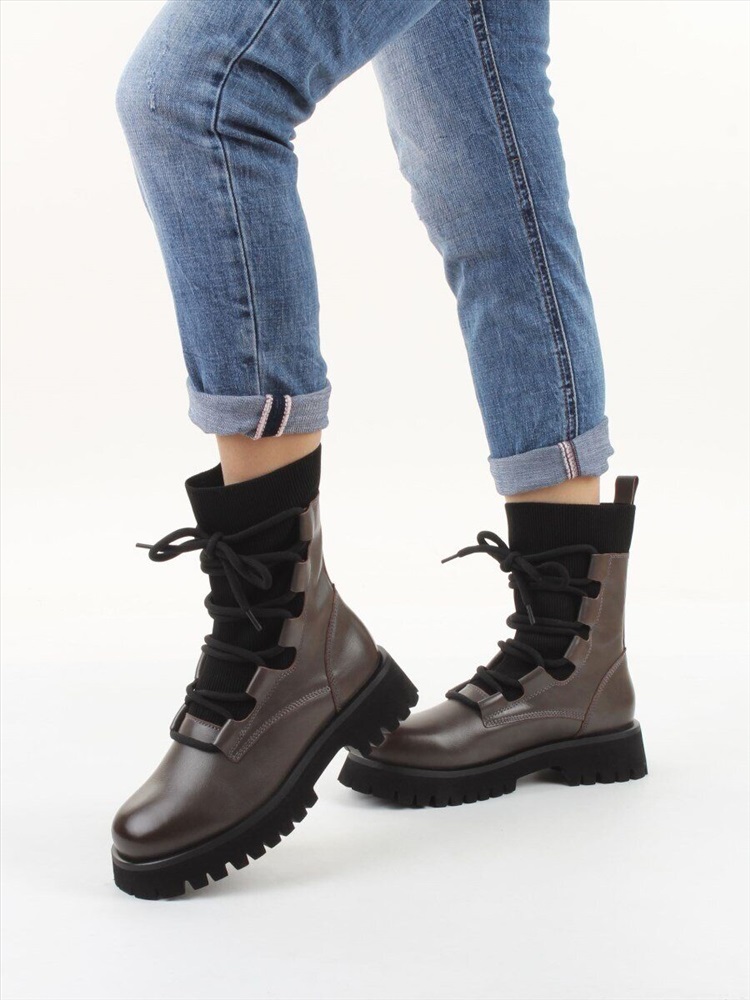 Вшитая трикотажная вставка имитирующая носок легко тянется и облегает ногу.