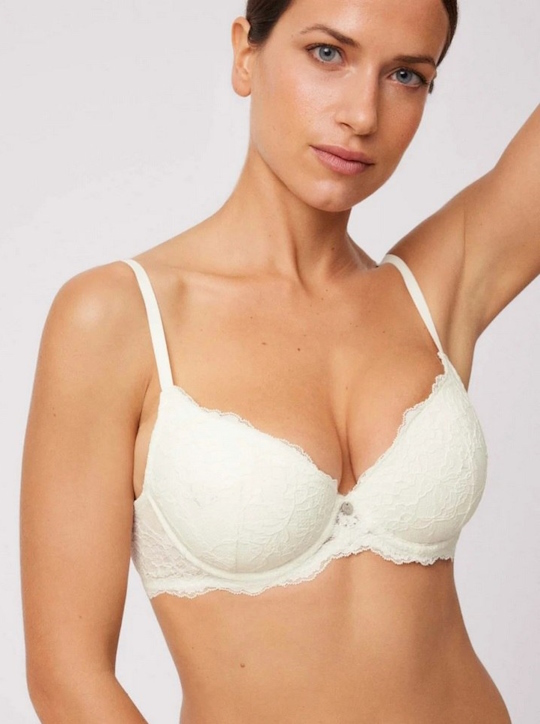 Состав: 90% полиамид, 10% эластан Бюстгальтер с чашкой из тонкого поролона на кости. Выполнен из цветочного кружева. Несъемные регулируемые бретели. Декор - подвеска. Европейский размер соответствует российскому размеру! Комментарии к товару