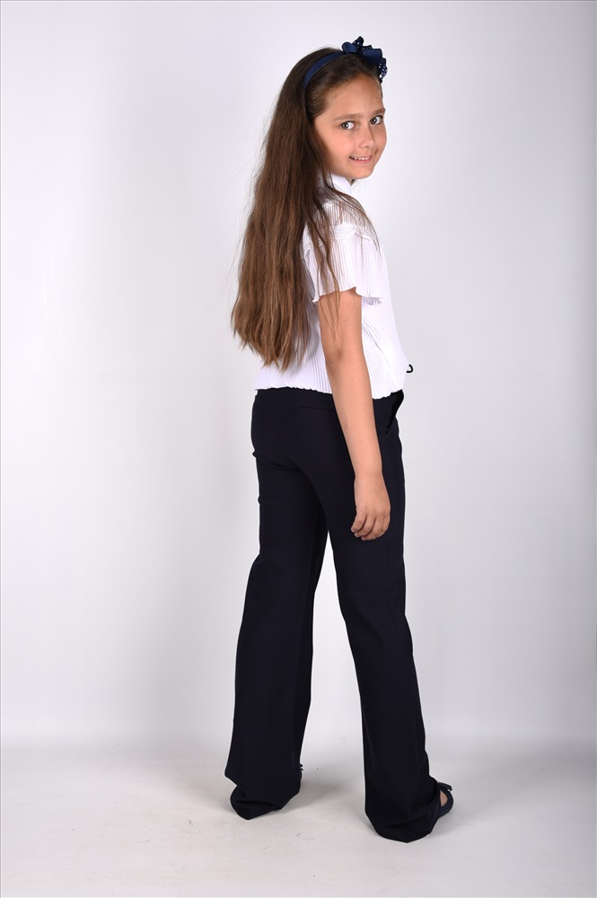 Производитель-Yuke (Китай) Брюки школьные для девочки на поясе, силуэт "Кюлоты" -свободные от бедра, длина 7/8 Модель прекрасно сочетается с блузами и рубашками из нашей коллекции. На поясе внутри резинка. Состав - COTTON - 95%, SPANDEX - 5% Размеры 22-27/ 6 штук (140-170) Цвет- темно- синий. Комментарии к товару