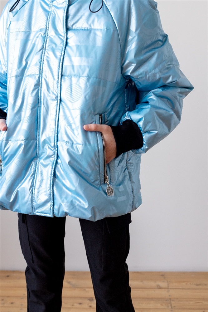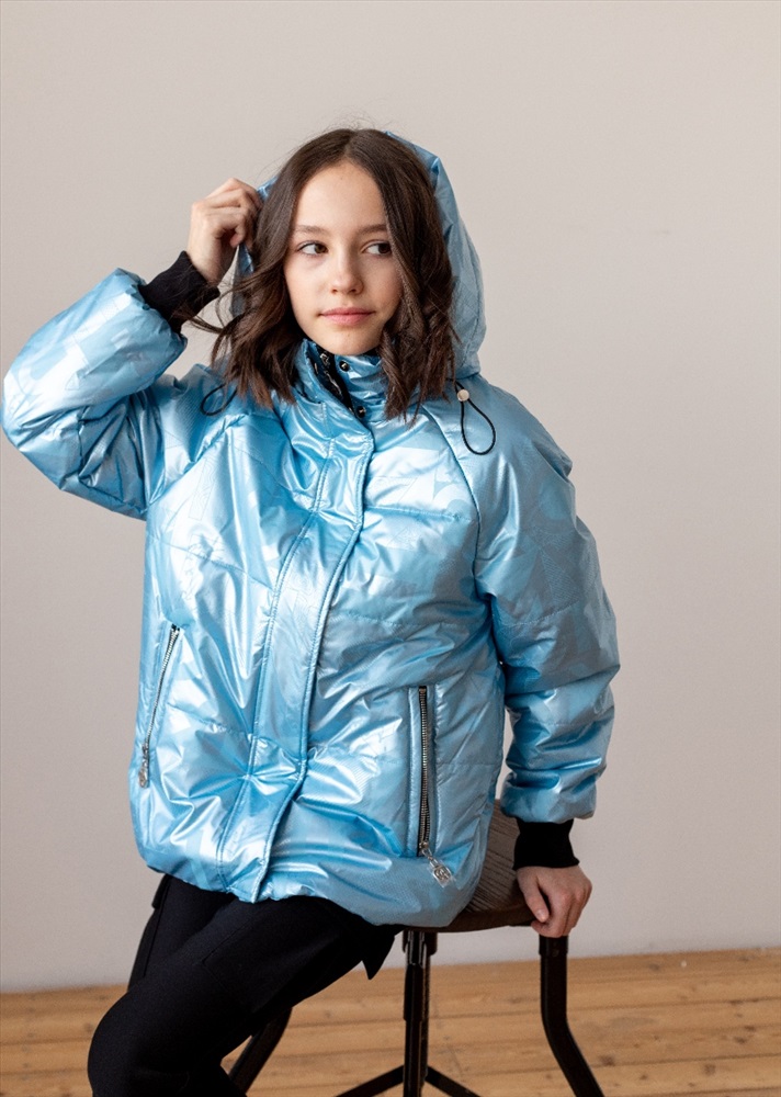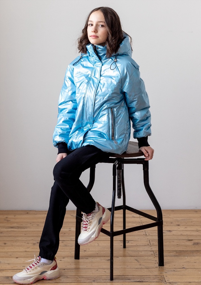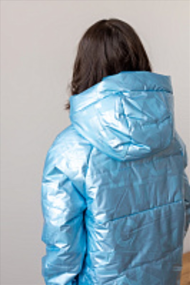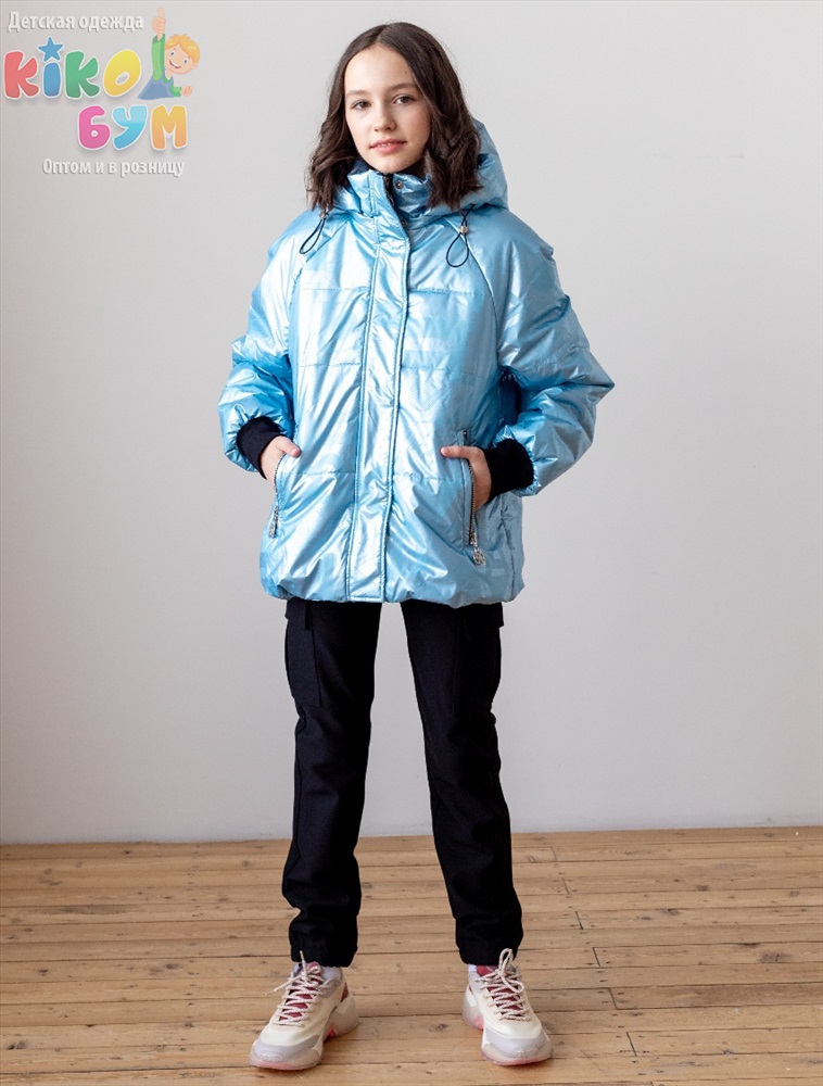 Трикотажные манжеты, объёмный капюшон завершают образ.