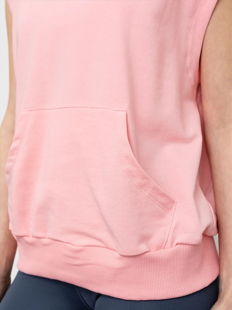 Рост: 164-170 Стильная жилетка из легкого трикотажного футера. Силуэт модели прямой и свободный. Есть просторный уютный капюшон. Спущенная линия плеча дарит особый комфорт. Изюминкой модели является вместительный карман-кенгуру. По нижнему краю проходит широкий пояс из рибаны. Стильный жилет для комфортных городских образов!