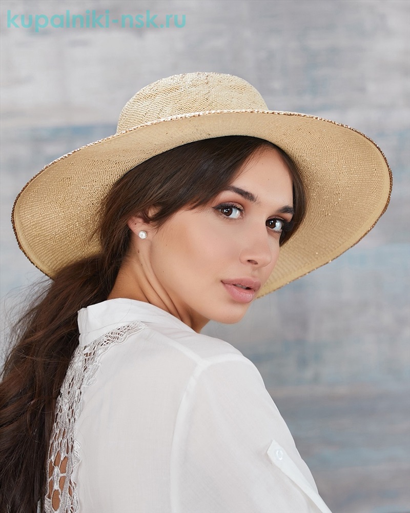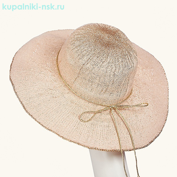 Стильная летняя шляпа с большими полями. Особенность этой шляпы в ее плетении, основой которого является изящный металлизированный жгут. Прекрасный аксессуар для прогулок по городу и пляжного отдыха. Состав: 90% бумага 10% полиэстерКомментарии к товару