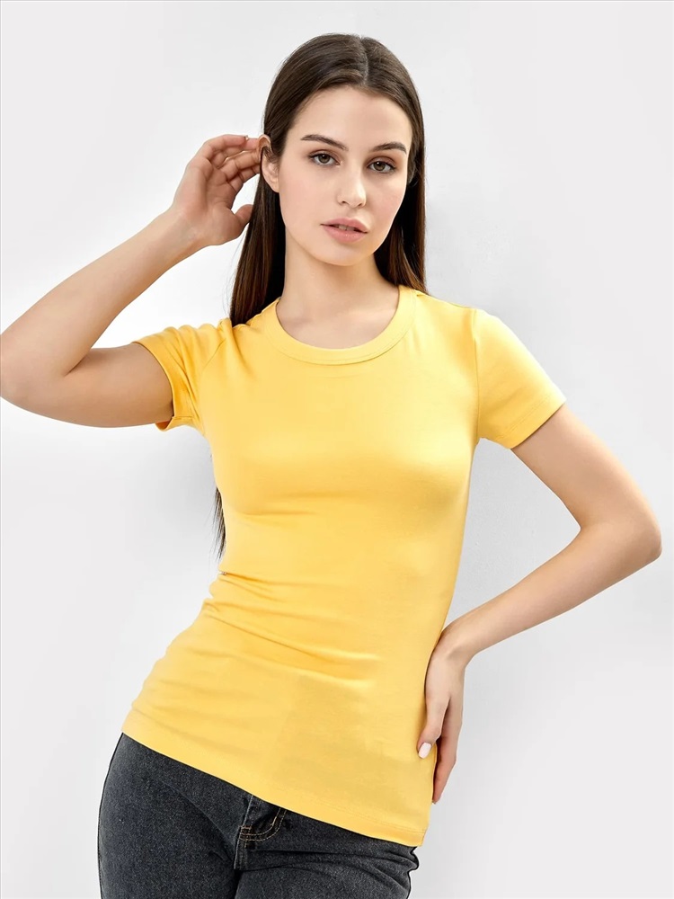 Обхват бедер: 90 Спортивная футболка прилегающего силуэта из рибаны. В составе полотна – натуральный хлопок и немного эластана. Горловина круглая, рукава короткие. Отличный вариант футболки для спорта, домашних дел и прогулок!
