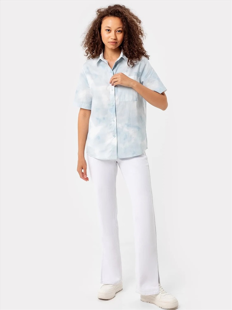 Российский размер: 42 Обхват груди: 84 Обхват бедер: 90 Артикул поставщика: 112682 Состав: 100% хлопок Год: 2023 Страна: Беларусь Вид застежки: пуговицы Пол: Женский Вырез горловины: круглый фактура материала: текстильный Конструктивные элементы: карман Назначение: повседневная Покрой: оверсайз Уход за вещами: деликатная стирка при 30 градусах Тип рукава: короткие Рост: 170 Блузка из текстильного хлопкового полотна. Блуза имеет прямой свободный силуэт, длину до линии бедер и фигурный низ. Линия плеча спущена – эта особенность кроя добавляет модели удобства. Вырез горловины – круглый, с рубашечным воротником. Рукава длиной до локтя. Застегивается на пуговицы. Спереди есть функциональный накладной карман. Рекомендуем! Комментарии к товару