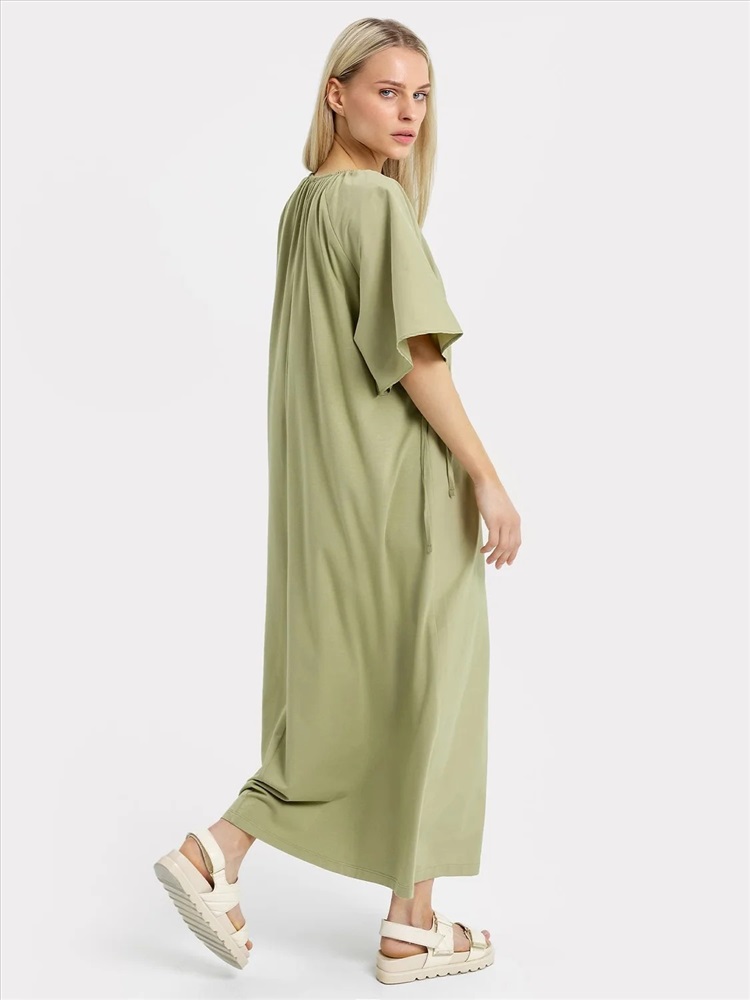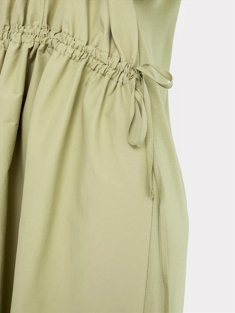 Российский размер: 42 Обхват груди: 84 Обхват бедер: 90 Артикул поставщика: 152562 Состав: 65ХЛ, 19МОДАЛ, 13ПЭ, 3ЭЛ Сезон: Лето Год: 2023 Страна: Беларусь Тип рукава: короткие Тип карманов: без карманов Вырез горловины: круглый Назначение: повседневная Пол: Женский фактура материала: тканое полотно Покрой: свободный Конструктивные элементы: кулиска Предмет: Платья Декоративные элементы: кулиска Уход за вещами: деликатная стирка при 30 градусах Вид застежки: без застежки Рост: 170 Платье женское свободного силуэта из ткани и трикотажного полотна кулирки. Горловина круглой формы. В горловину вставлена эластичная тесьма, которая образует сборку. Рукав-реглан из ткани расширяется к низу. Передняя деталь из ткани, отрезная по талии с кулисой в которую вставлена бейка из основного полотна. Деталь спинки из кулирки, с центральным швом. Низ платья расширяется к низу. Длина платья ниже колена. Комментарии к товару