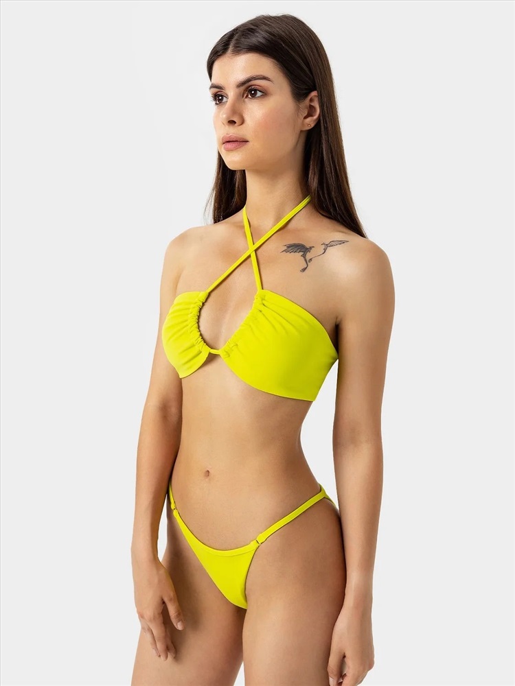 Российский размер: 42 Обхват груди: 84 Обхват талии: 73 Обхват бедер: 90 Артикул поставщика: 702221-1 Состав: 80% полиамид; 20% эластан Сезон: Лето Год: 2023 Страна: Беларусь Пол: Женский Назначение белья/купальника: пляж Бюстье купальное типа бандо. Чашки цельнокроенные со спинкой на подкладке из трикотажного полотна, сосборены к центру. Срез проймы и низа обтачные, срез горловины обработан швом впогибку с протянутой внутрь бретелью-завязкой из основного полотна. Завязка длинная. Трусы купальные «слип» со средней линией талии. Ластовица, фронтальная и задняя части, обтачаны подкладкой из трикотажного полотна. Талия обработана узкой окантовкой из основного полотна. По бокам протяжки из основного полотна соединяются с передней деталью через кольца металлические диаметром 8 мм (арт. F2760.008). Комментарии к товару