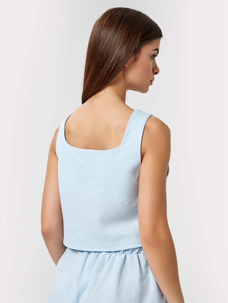 Российский размер: 44 Обхват груди: 88 Обхват бедер: 94 Артикул поставщика: 502717 Состав: 53% лен; 47% вискоза Год: 2023 Страна: Беларусь Уход за вещами: деликатная стирка при 30 градусах Назначение: домашняя одежда Покрой: прямой Вырез горловины: каре Декоративные элементы: без элементов фактура материала: текстильный Пол: Женский Вид бретелей: широкие бретели Рост: 170 Стильный топ на широких бретелях. Выполнен из премиального льна и нежной легкой вискозы. Силуэт прямой, длина до линии талии. Вырез декольте достаточно глубокий, формы "каре". На спинке есть петелька-вешалка. Рекомендуем для стильных летних образов! Комментарии к товару