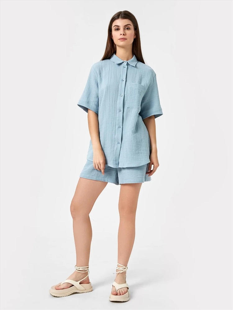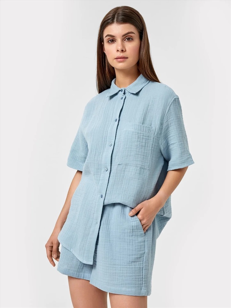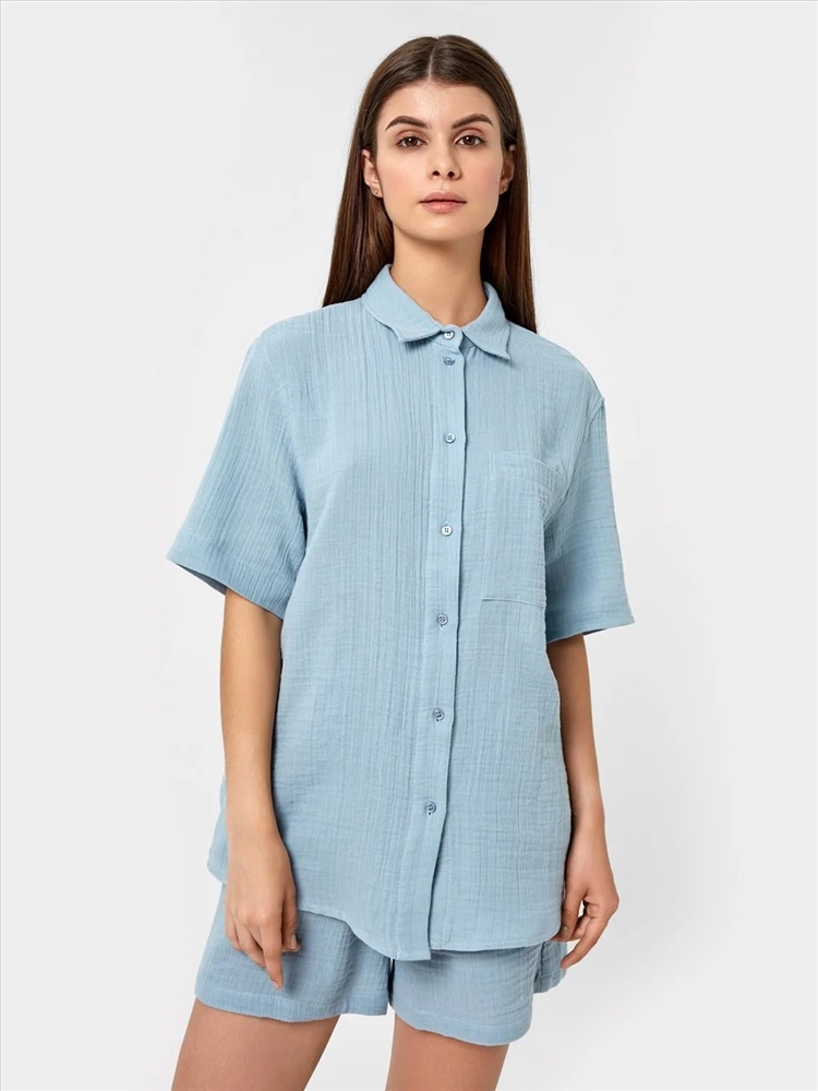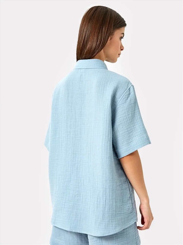 Артикул поставщика: 112682 Состав: 100% хлопок Сезон: Лето Год: 2023 Страна: Беларусь Тип рукава: короткие Назначение: повседневная Вид застежки: пуговицы Уход за вещами: деликатная стирка при 30 градусах Вырез горловины: круглый Пол: Женский фактура материала: текстильный Покрой: оверсайз Конструктивные элементы: карман Российский размер: 42 Рост: 170 Обхват груди: 84 Обхват бедер: 90 Блузка из текстильного хлопкового полотна. Блуза имеет прямой свободный силуэт, длину до линии бедер и фигурный низ. Линия плеча спущена – эта особенность кроя добавляет модели удобства. Вырез горловины – круглый, с рубашечным воротником. Рукава длиной до локтя. Застегивается на пуговицы. Спереди есть функциональный накладной карман. Рекомендуем! Комментарии к товару