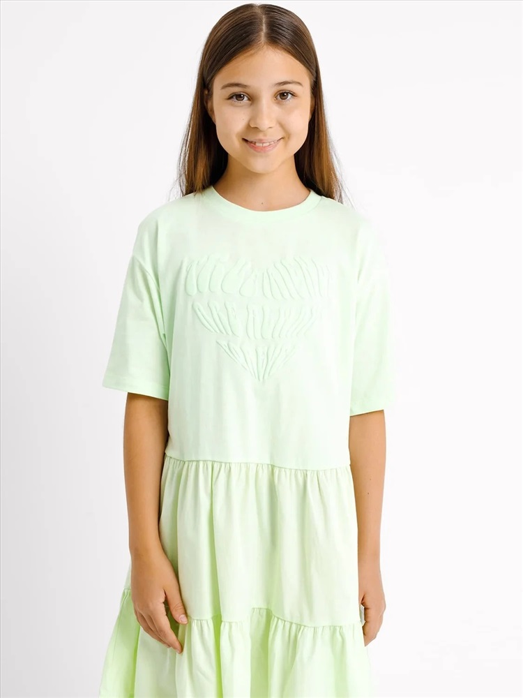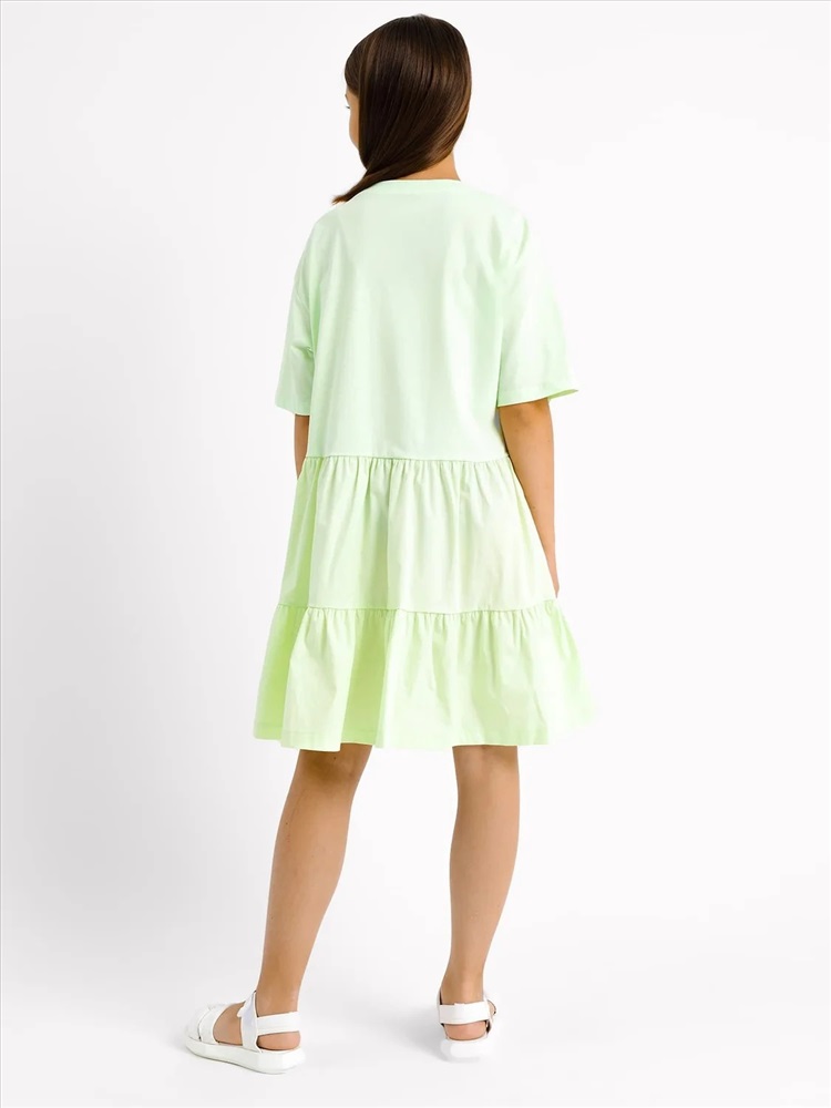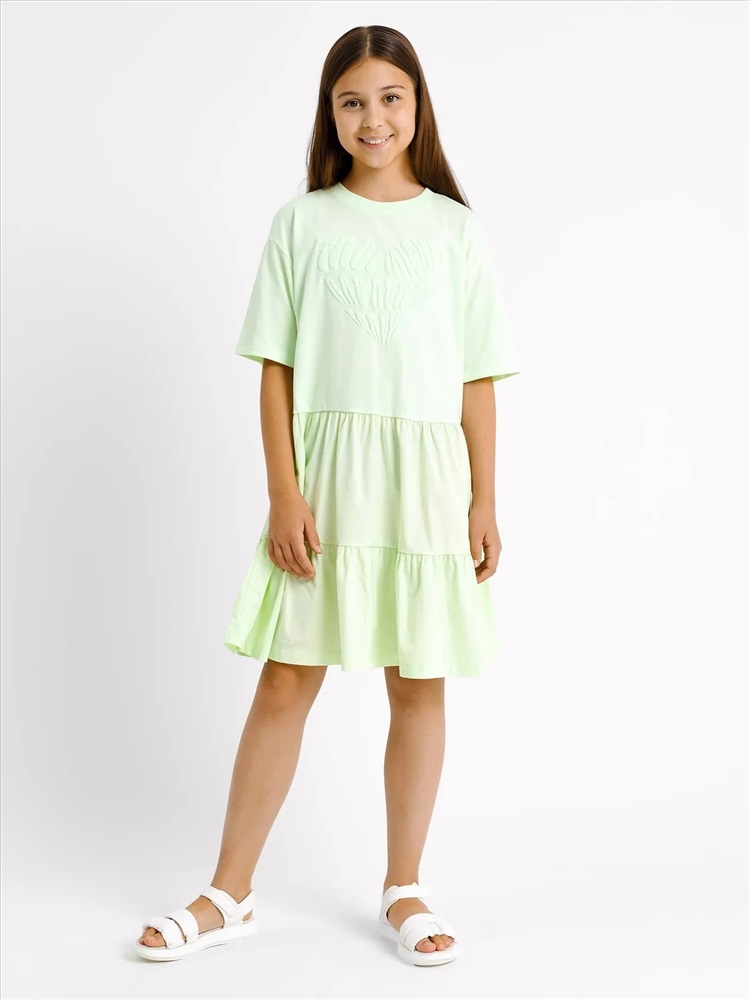 Российский размер: 128 Рост: 122-128 Возраст: 8 Обхват груди: 64 Артикул поставщика: 157800 Состав: 100% хлопок Сезон: Лето Год: 2023 Страна: Беларусь Назначение: повседневная Конструктивные элементы: волан Покрой: A-силуэт Вырез горловины: круглый фактура материала: кулирное полотно+ткань Декоративные элементы: без элементов Тип карманов: без карманов Уход за вещами: деликатная стирка при 30 градусах Тип рукава: короткие Вид застежки: без застежки Пол: Девочки Многоярусное платье силуэта оверсайз для девочек. Вырез классический – круглый, не глубокий. Спущенная линия плеча дарит особый комфорт. Рукава короткие, подогнуты. Нижние ярусы платья выполнены из поплина. Рекомендуем! Комментарии к товару