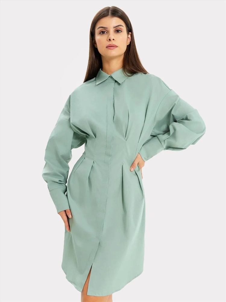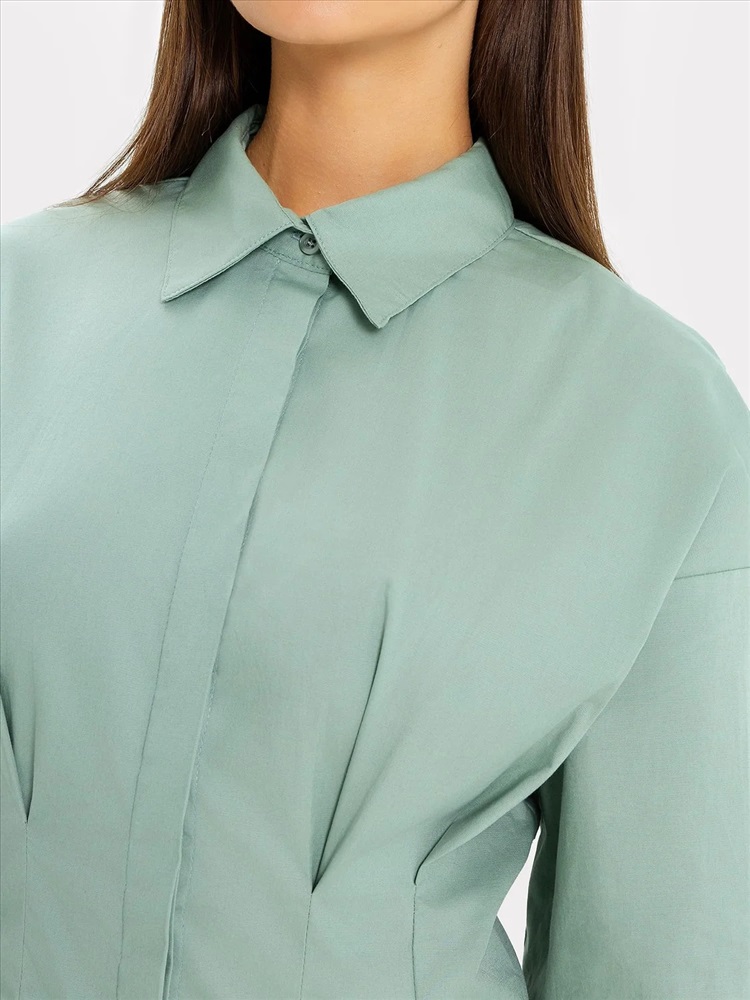 Российский размер: 42 Обхват груди: 84 Обхват бедер: 90 Артикул поставщика: 152515 Состав: 97% хлопок; 3% эластан Сезон: Весна, Лето Год: 2023 Страна: Беларусь Декоративные элементы: складки Уход за вещами: деликатная стирка при 30 градусах Тип рукава: длинные Пол: Женский Конструктивные элементы: нет фактура материала: тканое полотно Тип карманов: без карманов Назначение: повседневная Вид застежки: пуговицы Предмет: Платья Вырез горловины: круглый Покрой: полуприлегающий Рост: 170 Текстильное платье мини женское полуприлегающего силуэта с фигурным низом. Перед с центральной застежкой на пуговицы. Горловина круглой формы с воротником-стойкой. Спереди и сзади заложены складки, подчеркивающие талию. Линия плеча спущена, длинные рукава заканчиваются широкими манжетами. Комментарии к товару