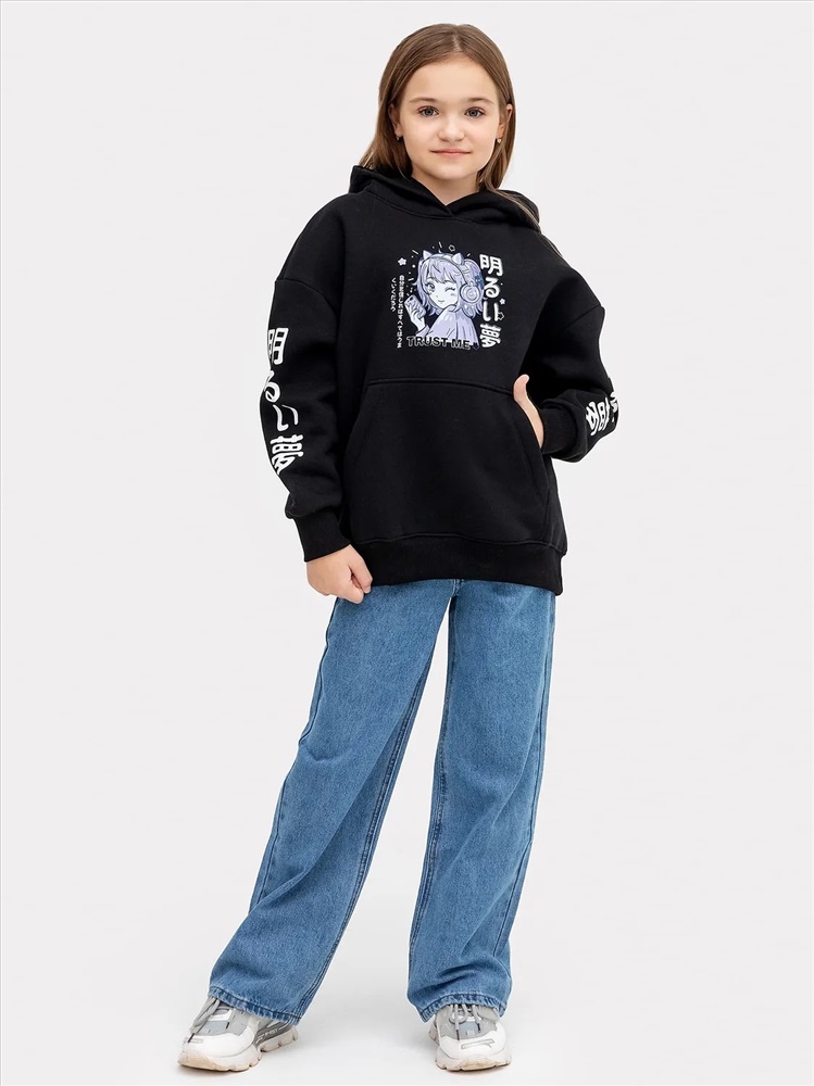 Утеплитель: начес Анорак изготовлен из трикотажного полотна футер. Анорак свободного силуэта (оверсайз), с капюшоном. Горловина округлой формы. Капюшон со средним швом, на подкладке из осн. полотна. Плечо спущено, рукав втачной длинный. По низу рукава отрезная манжета из рибаны. По переду настрочен карман кенгуру. Пояс отрезной из рибаны, отстрочен.