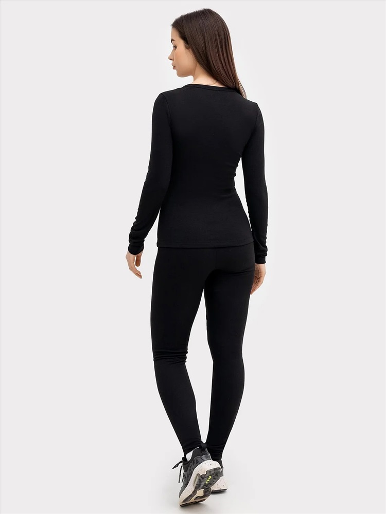 Рост: 164-170 Комплект состоит из фуфайки и легинс. Комплект выполнен из трикотажного полотна рибана "термо". Фуфайка полуприлегающего силуэта, длина до середины линии бедер. Горловина V-образной формы, окантована бейкой из основного полотна. Нижние срезы фуфайки и рукавов обработаны швом вподгибку, на 2х-игольной плоскошовной машине. Легинсы облегающего силуэта, без боковых швов. Пояс цельнокроеный с эластичной тесьмой внутри. Нижние срезы обработаны швом вподгибку, на 2х-игольной плоскошовной машине