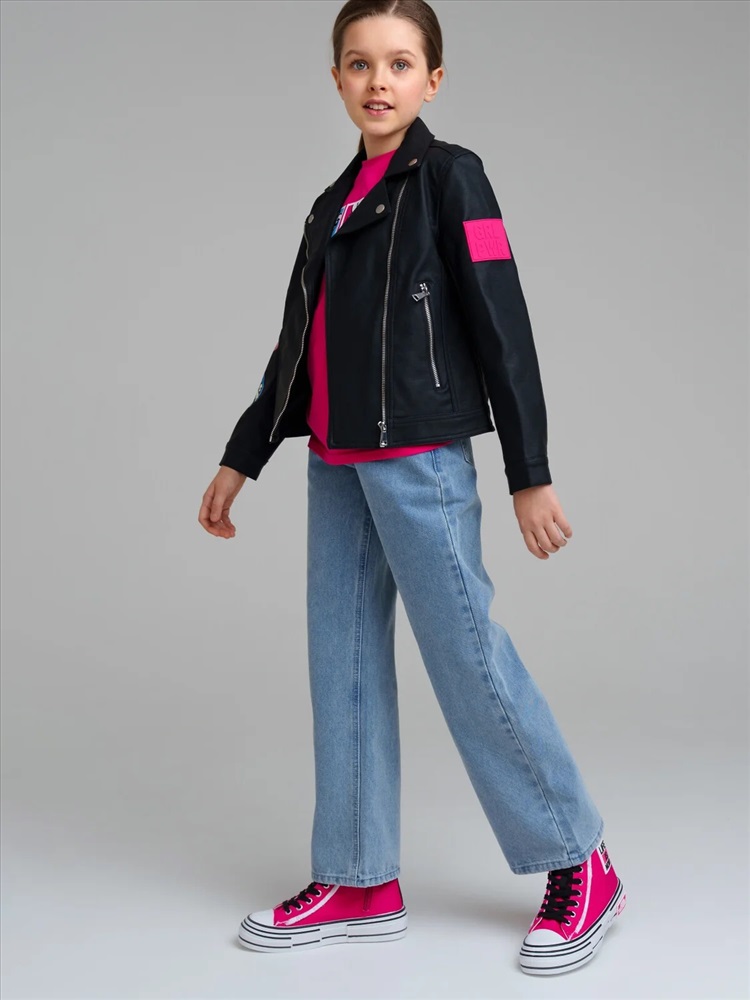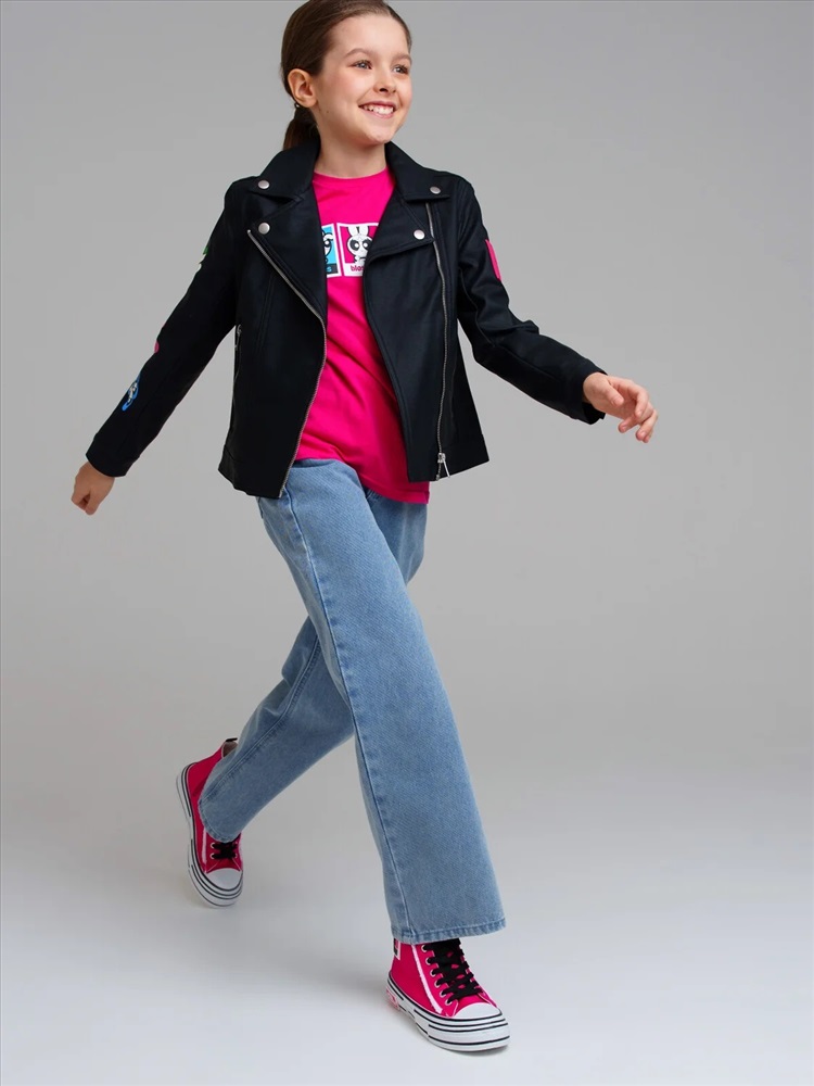 Российский размер: 140 Рост: 140 Возраст: 10 Обхват шеи: 30,9/29,9 Артикул поставщика: 12441004 Год: 2024 Куртка-косуха из экокожи. Гладкая подкладка тафетта. Два боковых кармана на молнии. Комментарии к товару