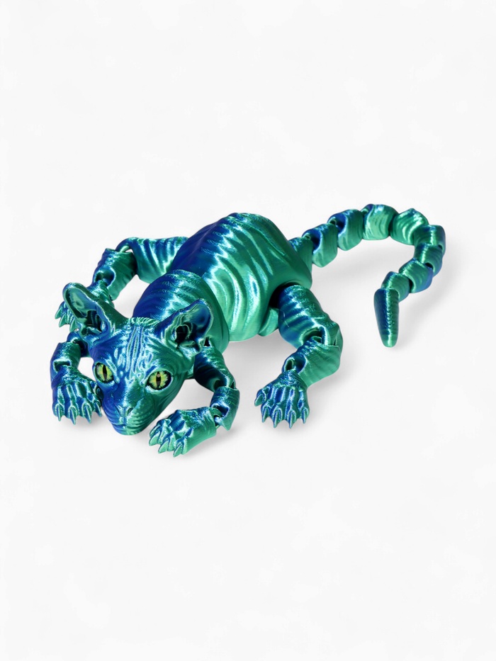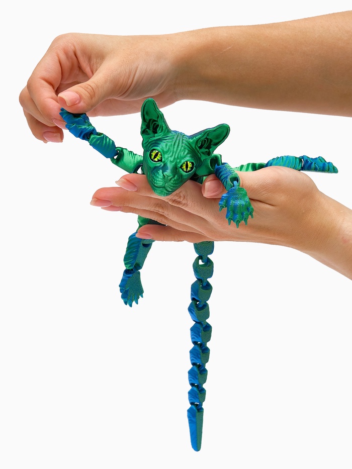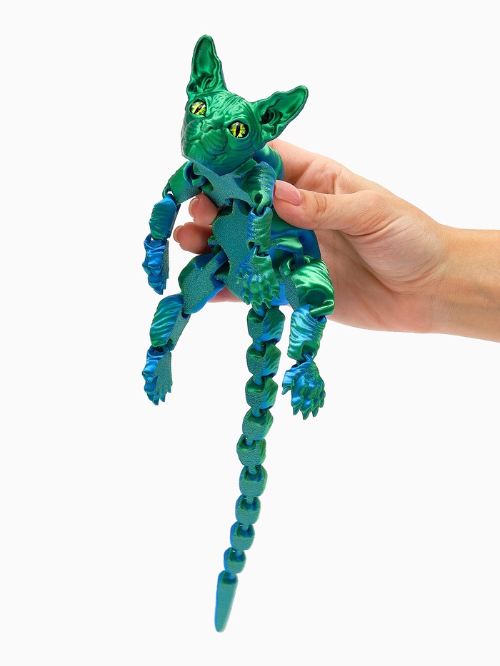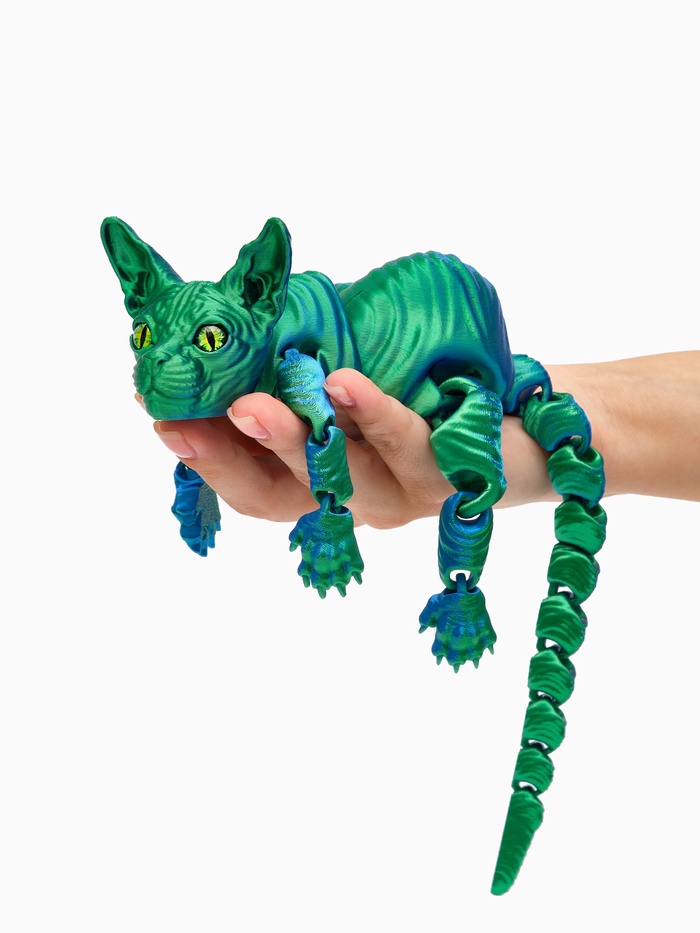 * Узнаваемая анатомия: технология 3D-печати воспроизводит характерные черты сфинкса — выразительные складки кожи, крупные уши и грациозную позу. Модель демонстрирует высокую степень детализации.
