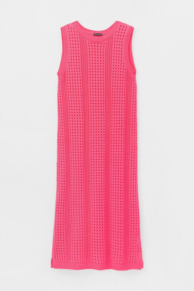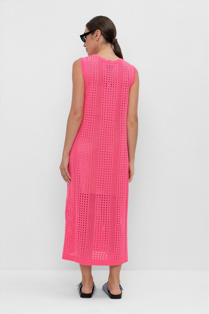 Вязаное ажурное платье. Состав 50% хлопок, 50% акрил. Благодаря акрилу в составе изделие не пилингуется. В комплекте внутреннее платье из бифлекса.
