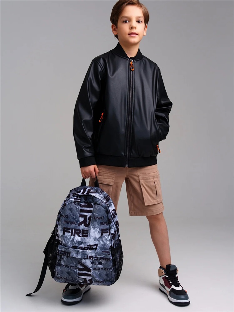 Рюкзак текстильный для мальчика. 40*30*15 см. Широкие регулируемые мягкие лямки. Основное отделение и 1 карман на молнии. 2 боковых кармана без молнии. Внутри - отделение для ноутбука, 1 карман на молнии, 2 кармана без молнии, карабин для ключей. Усиленная спинка. Водонепроницаемая ткань. Светоотражающие элементы - логотип и светоотражающие полоски на лямках.