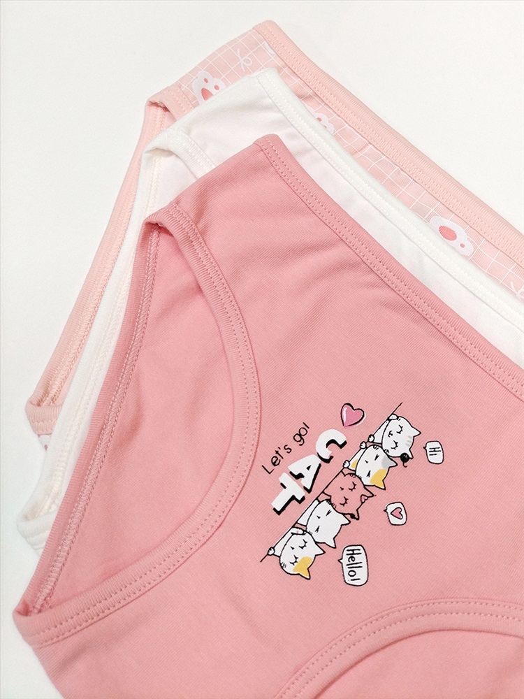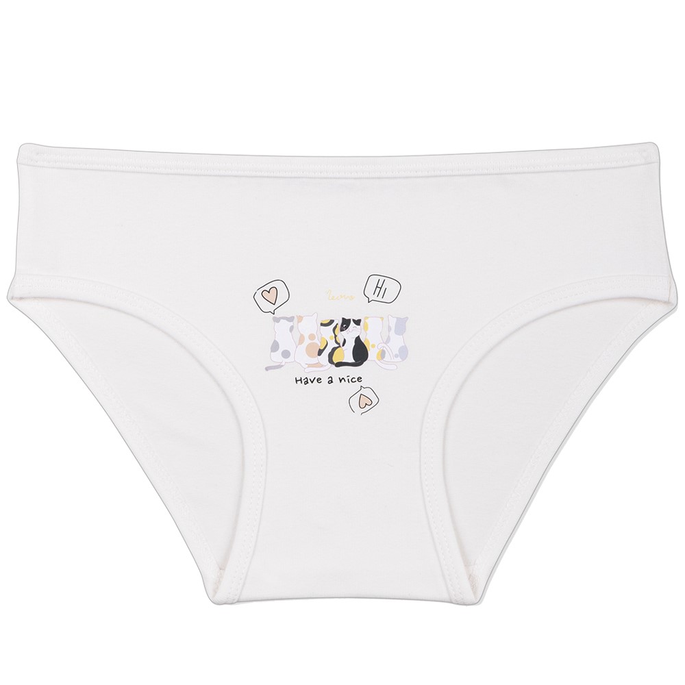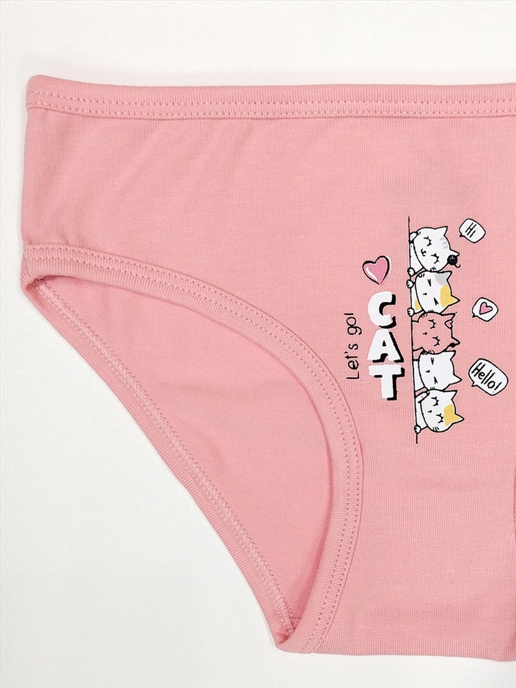 Трусы-слипы для девочки. Выполнены из эластичного х/б трикотажа кулирное полотно. Декорированы принтом "котики; кошачьи лапки". В поясе и проймах отделаны эластичным трикотажным кантом. Ластовица из хлопка.