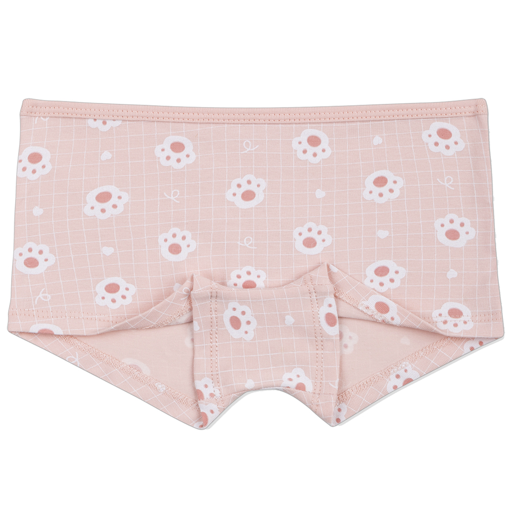 Трусы-шорты для девочки. Выполнены из эластичного х/б трикотажа кулирное полотно. Декорированы принтом "котики; кошачьи лапки". В поясе отделаны эластичным трикотажным кантом. В проймах с подворотом. Ластовица из хлопка.