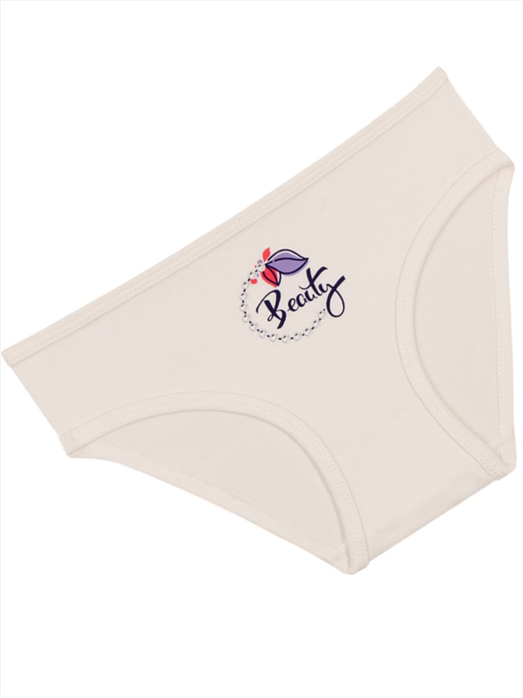 Трусы-слипы для девочки. Выполнены из эластичного х/б трикотажа кулирное полотно. Декорированы принтом "Красота". В поясе и проймах отделаны эластичным трикотажным кантом из основного полотна.