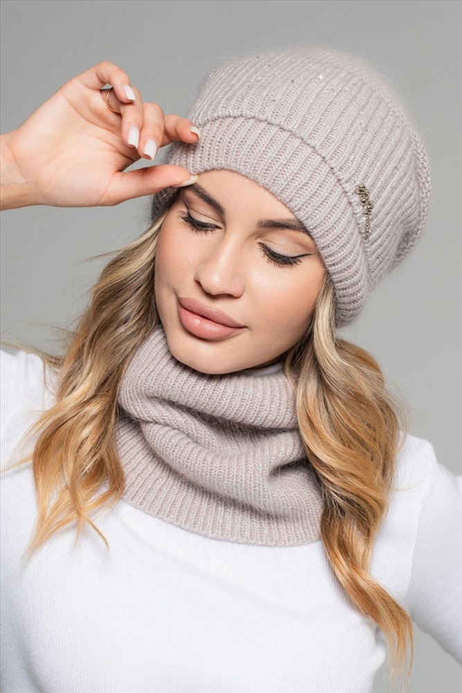 комплект- снуд, шапка 55-58 см, флис, с пайеткой