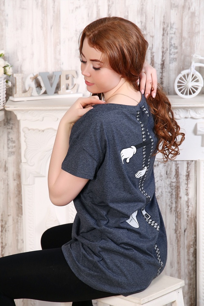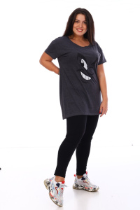 Футболка женская свободного силуэта,легкий оверсайз с укороченным рукавом.Горловина отделана планкой в цвет основной ткани. На полочке и спинке принт из 2 частей. Ткань кулирка меланж.
