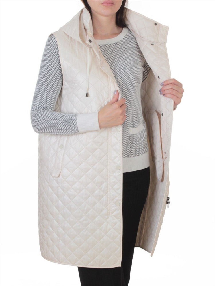 Кол-во в упаковке: 1 Жилет утепленный женский Модель свободного кроя. Модель сезона: осень-весна. Артикул: 802 LT. BEIGE Цвет очень темно зеленый! Практически черный! Модель свободного кроя. Центральная застежка на молнию. Ветрозащитный клапан с застежкой на кнопки. Два накладных кармана спереди. Воротник стойка. Капюшон съемный, на молнии. Фото сделано на модели размера 44/46: Рост модели 175 см., объем груди 90, талия 70, бедра 98. Витринный образец размера 46 российский: Длина спины: 95 см. Объем груди: 112 см. Объем талии: 118 см. Объем бедер: 120 см. Длина плеча: 10,0 см. Состав ткани: Верх: 100% полиэстер. Подкладка: 100% полиэстер. Утеплитель - синтепон плотностью 50 гр. Размер указанный на жилете и соответствие российским стандартам: 46 48 50 52 54 Модель свободного кроя! Комментарии к товару
