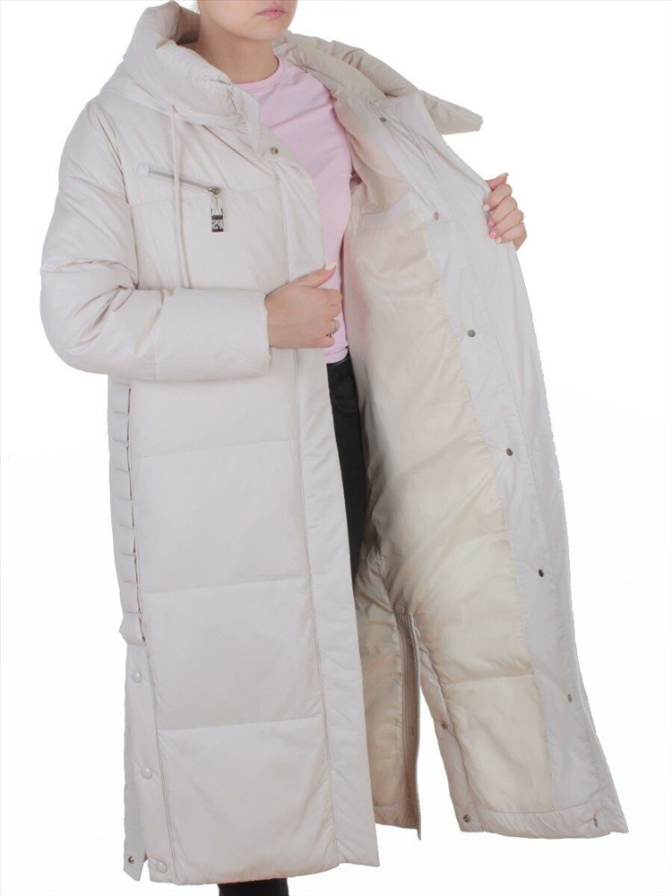 Кол-во в упаковке: 1 Пальто зимнее женское (200 гр. холлофайбер) Модель сезона: зима Артикул: 8310 LT. BEIGE Дополнительная информация: Модель свободного кроя. Плотность ткани: средней плотности, водоотталкивающая. Центральная застежка на молнию. Косая молния на пальто визуально вытягивает его, при этом привлекая внимание. Ветрозащитный клапан внутри и снаружи на кнопках. Два втачных кармана с застежкой на магнитах спереди. Один внутренний карман. Капюшон несъемный с регулировочным шнурком. Трикотажные манжеты внутри рукавов. Декоративная молния на груди имитирует кармашек. Функциональные боковые разрезы на кнопках по бокам, внизу изделия, длиной 32 см. Фото сделано на модели размера 44/46: Рост модели 175 см., объем груди 90, талия 70, бедра 98. Витринный образец размера M - 44/46 российский: Длина спины: 115 см. Объем груди: 114 см. Объем талии: 116 см. Объем бедер: 120 см. Длина плеча: 10 см. Длина рукава: 64 см. Материал верха: 100% полиэстер. Подкладка: 100% полиэстер. Утеплитель: 200 гр. холлофайбер. Размеры указанные на куртке и соответствие российским стандартам: S - 42/44 российский M - 44/46 российский L - 46/48 российский XL - 48/50 российский 2XL - 50/52 российский Комментарии к товару