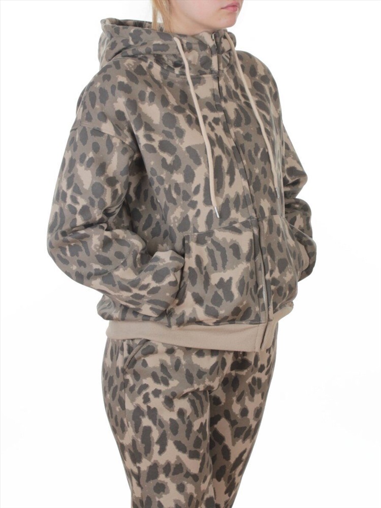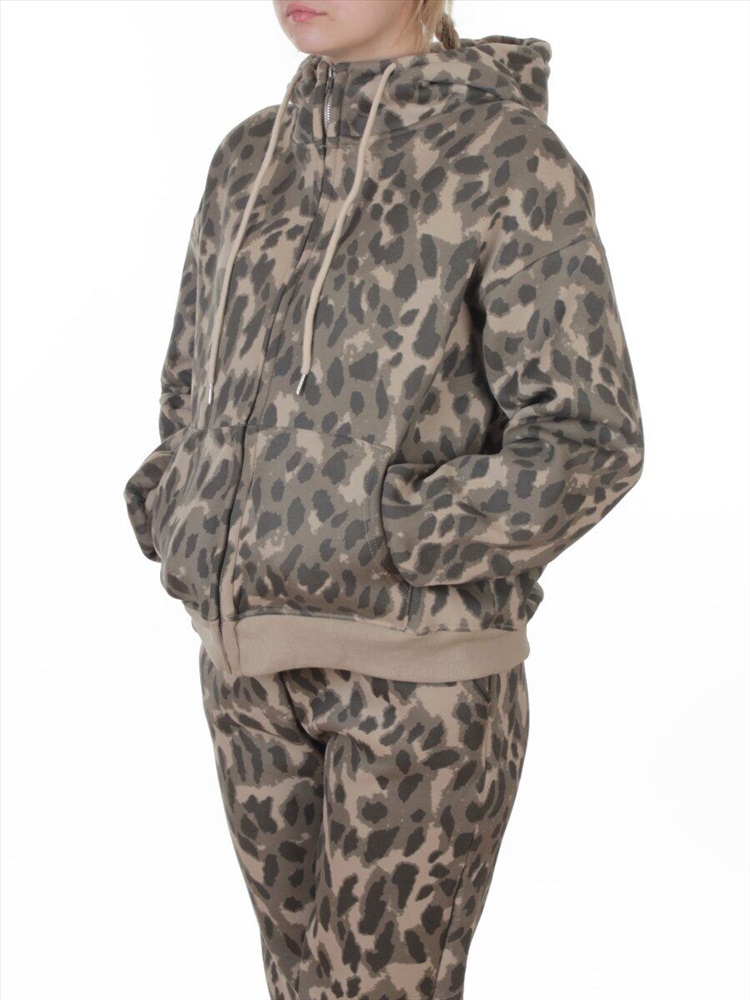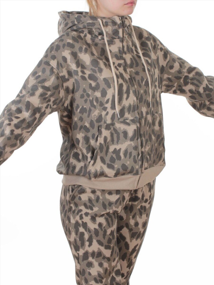 Кол-во в упаковке: 1 Костюм спортивный зимний женский (95% хлопок, 5% полиэстер) Модель сезона: осень - зима. Артикул: 869-3 BEIGE/LEOPARD Дополнительная информация: Ткань плотная - флис. Толстовка: Центральная застежка на молнию. Несъемный двухслойный капюшон с регулировочным шнурком. На рукавах и по низу трикотажные манжеты. Два накладных кармана спереди. Брюки: Два кармана спереди. Пояс на резинке с регулировочным шнурком, ширина 5 см. По низу штанин резинки. Состав ткани: 95% хлопок, 5% полиэстер. Фото сделано на модели размера 44/46: Рост модели 175 см., объем груди 90, талия 72, бедра 96. Витринный образец размера M - 44/46 российский: Толстовка: Длина спины: 59 см. Объем груди: 120 см. Объем талии: 100 см. (тянется) Длина плеча до линии рукава: 20 см. Длина рукава от линии плеча 57 см. Брюки: Объем талии: 70 см. (тянется) Объем бедер 104 см. Объем колена 48 см. Объем по нижней части штанины 32 см. Длина внешней части штанины (замеры из под пояса) 95 см. Длина внутренней части штанины 68 см. Посадка (с поясом) 34 см. Размер указанный на спортивном костюме и соответствие российским стандартам: M - 44/46 российский L - 46/48 российский XL - 48/50 российский Комментарии к товару