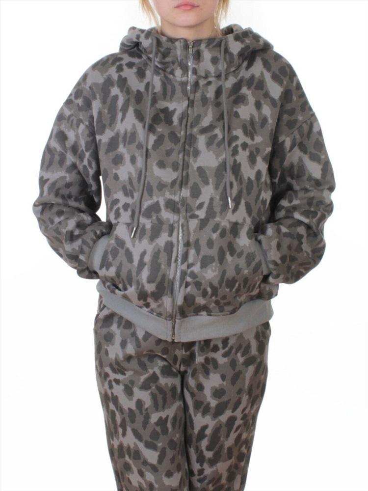 Кол-во в упаковке: 1 Костюм спортивный зимний женский (95% хлопок, 5% полиэстер) Модель сезона: осень - зима. Артикул: 869-3 GRAY/LEOPARD Дополнительная информация: Ткань плотная - флис. Толстовка: Центральная застежка на молнию. Несъемный двухслойный капюшон с регулировочным шнурком. На рукавах и по низу трикотажные манжеты. Два накладных кармана спереди. Брюки: Два кармана спереди. Пояс на резинке с регулировочным шнурком, ширина 5 см. По низу штанин резинки. Состав ткани: 95% хлопок, 5% полиэстер. Фото сделано на модели размера 44/46: Рост модели 175 см., объем груди 90, талия 72, бедра 96. Витринный образец размера M - 44/46 российский: Толстовка: Длина спины: 59 см. Объем груди: 120 см. Объем талии: 100 см. (тянется) Длина плеча до линии рукава: 20 см. Длина рукава от линии плеча 57 см. Брюки: Объем талии: 70 см. (тянется) Объем бедер 104 см. Объем колена 48 см. Объем по нижней части штанины 32 см. Длина внешней части штанины (замеры из под пояса) 95 см. Длина внутренней части штанины 68 см. Посадка (с поясом) 34 см. Размер указанный на спортивном костюме и соответствие российским стандартам: M - 44/46 российский L - 46/48 российский XL - 48/50 российский Комментарии к товару