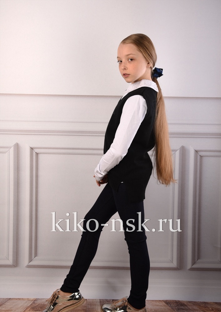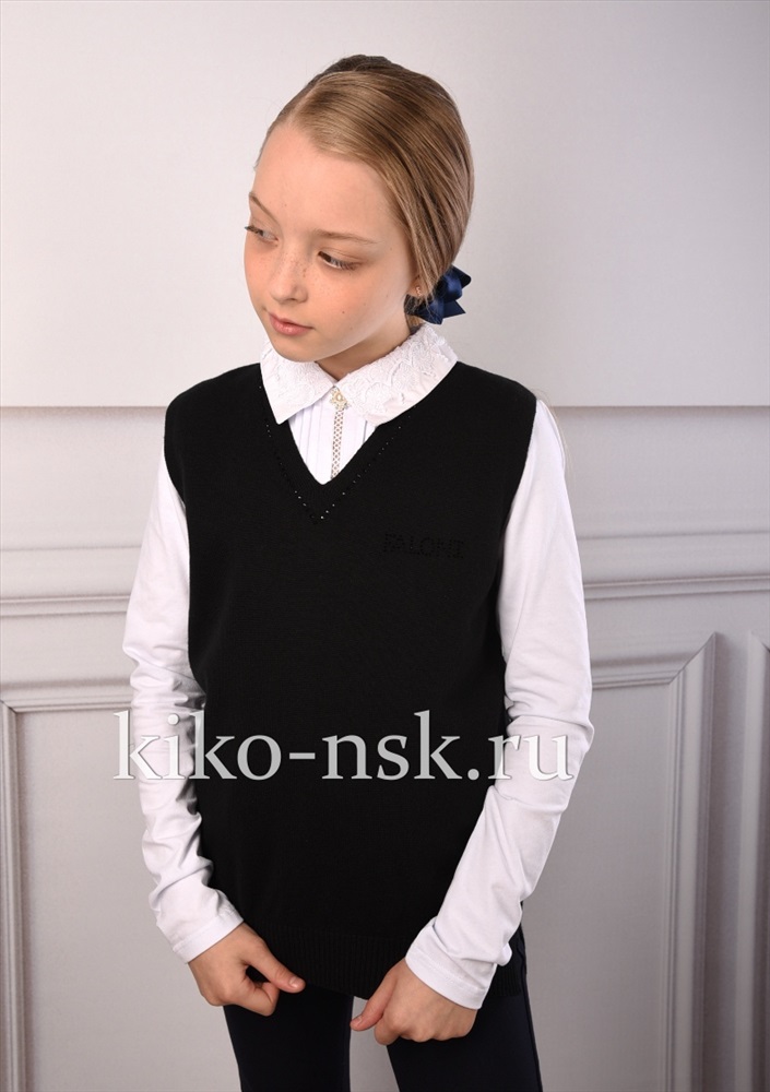 Жилет для девочки с V вырезом, стразы по полотну.