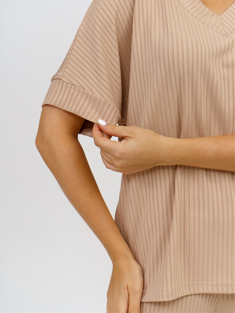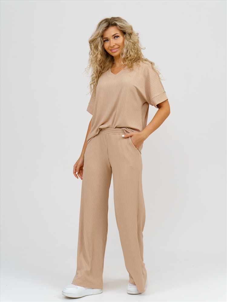 Обратите внимание: фото изделия сделано при искусственном освещении в студии, вживую - цвета могут немного отличаться. Стильный женский комплект в трендовых тонах из трикотажного полотна "лапша" – идеальное сочетание комфорта и моды. Блузка свободного кроя с V-образным вырезом горловины и спущенным рукавом на манжете подчеркнет вашу женственность, а брюки-кюлоты с функциональными карманами в боковых швах и поясом на резинке обеспечат максимальный комфорт в носке. Каждый элемент комплекта можно носить отдельно, создавая разнообразные образы. Этот спортивно-элегантный костюм двойка выполнен из высококачественного трикотажа – мягкого, легкого и приятного к телу, что делает его идеальным выбором для любого сезона. Универсальный дизайн позволяет носить его как дома, так и на прогулках, легких тренировках или встречах с подругами. Свободный полуприлегающий крой с завышенной посадкой по талии выгодно подчеркивает силуэт, скрывая недостатки и делая фигуру более подтянутой. Трендовая модель в стиле спорт-шик подойдет женщинам и девушкам любого возраста, особенно актуальна для невысоких фигур, визуально вытягивая пропорции. Базовый двухцветный комплект станет незаменимой частью гардероба весной, осенью и прохладным летом, даря уют и стиль в любую погоду