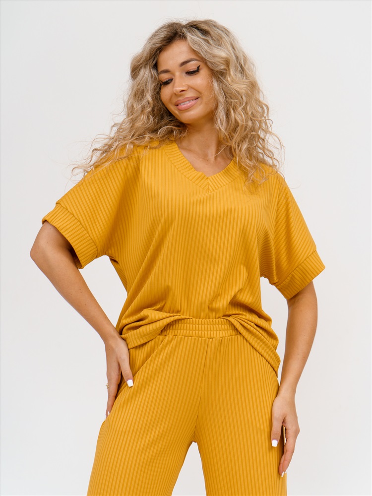 Обратите внимание: фото изделия сделано при искусственном освещении в студии, вживую - цвета могут немного отличаться. Стильный женский комплект в трендовых тонах из трикотажного полотна "лапша" – идеальное сочетание комфорта и моды. Блузка свободного кроя с V-образным вырезом горловины и спущенным рукавом на манжете подчеркнет вашу женственность, а брюки-кюлоты с функциональными карманами в боковых швах и поясом на резинке обеспечат максимальный комфорт в носке. Каждый элемент комплекта можно носить отдельно, создавая разнообразные образы. Этот спортивно-элегантный костюм двойка выполнен из высококачественного трикотажа – мягкого, легкого и приятного к телу, что делает его идеальным выбором для любого сезона. Универсальный дизайн позволяет носить его как дома, так и на прогулках, легких тренировках или встречах с подругами. Свободный полуприлегающий крой с завышенной посадкой по талии выгодно подчеркивает силуэт, скрывая недостатки и делая фигуру более подтянутой. Трендовая модель в стиле спорт-шик подойдет женщинам и девушкам любого возраста, особенно актуальна для невысоких фигур, визуально вытягивая пропорции. Базовый двухцветный комплект станет незаменимой частью гардероба весной, осенью и прохладным летом, даря уют и стиль в любую погоду