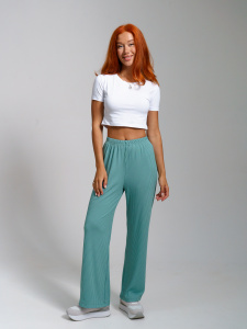 Женские летние брюки палаццо на резинке в рубчик – это идеальное сочетание стиля и комфорта для уверенных в себе модниц. Эти широкие брюки клеш с высокой талией создают элегантный силуэт, подчеркивая женственность и индивидуальность. Благодаря свободному крою и струящейся вискозной ткани с добавлением эластана, они обеспечивают невероятную легкость и комфорт даже в самый жаркий день.
