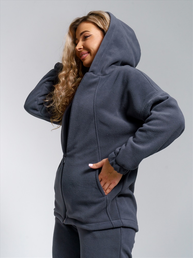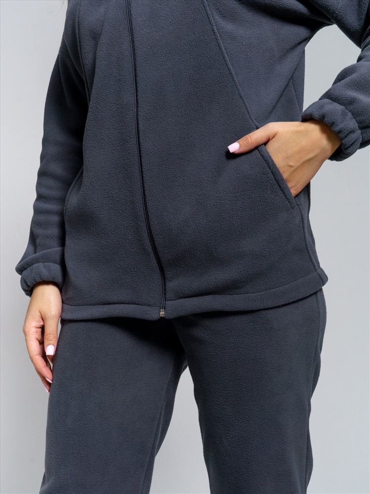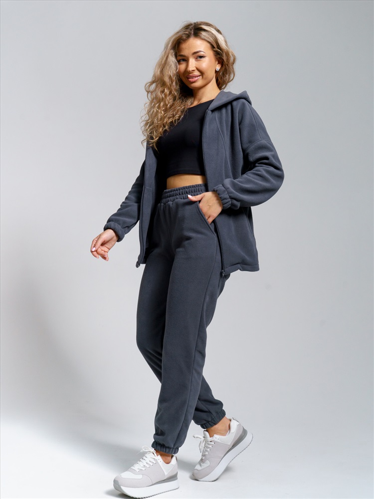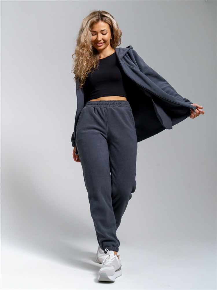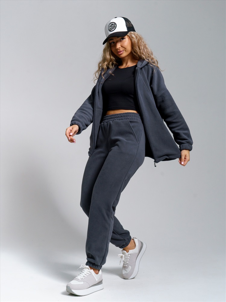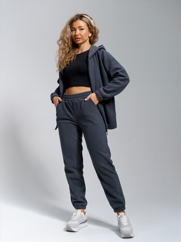Теплый домашний костюм для женщин из мягкого высококачественного флиса приятен к телу, отлично сохраняет тепло и пропускает воздух. Стильная толстовка с двойным воротником-стойкой на молнии защищает от ветра и холода, а свободный крой подходит для любого типа фигуры. Удобные джоггеры на резинке с наклонными карманами и притачным поясом обеспечивают идеальную посадку.