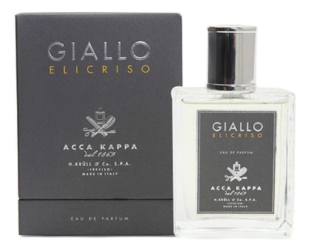 Древесно-пряный аромат Giallo Elicriso был выпущен в 2012 году в рамках лимитированной коллекции, посвященной Средиземноморью. Этот добротный парфюм наполнен мужественными нотами травянистого бессмертника, смолистыми оттенками кедра и прохладными акватическими мотивами.  Завершает звучание прогретый южным солнцем сухой ветивер и терпкие аккорды мускатного ореха.