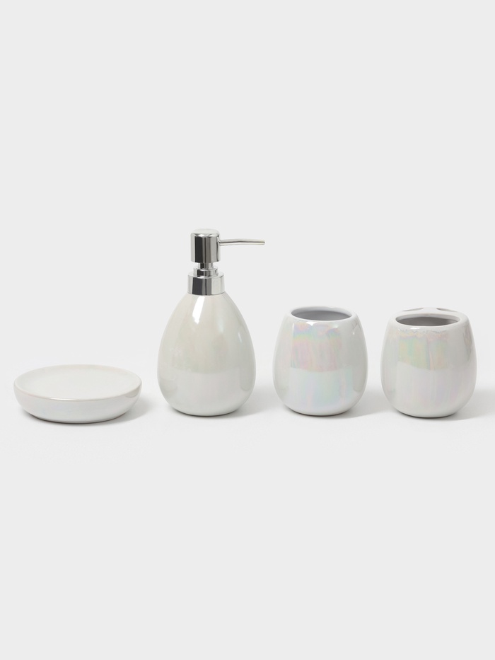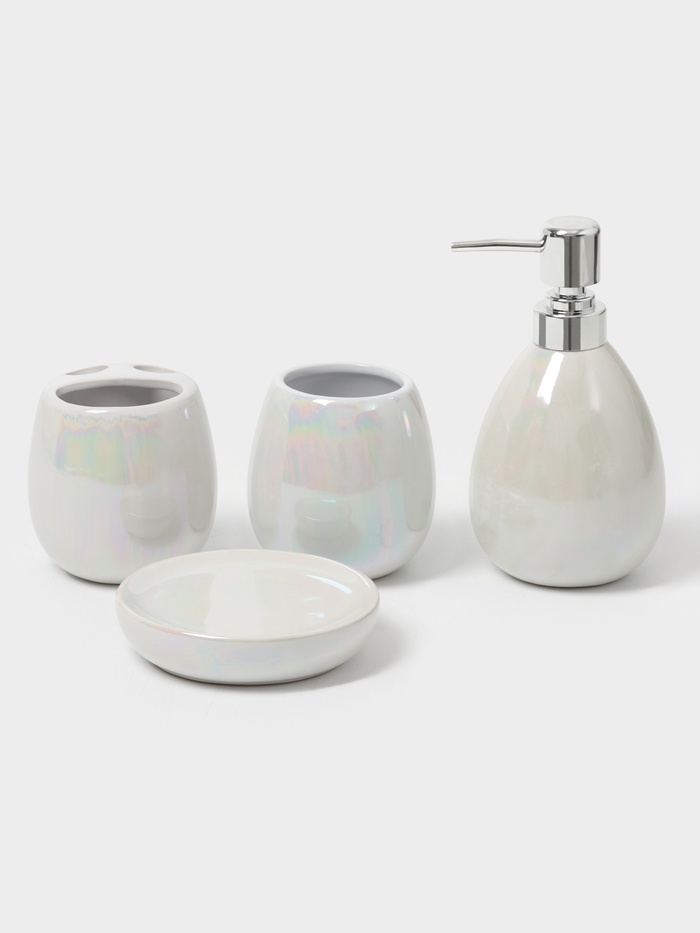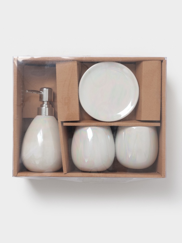 Набор аксессуаров организует пространство и станет стильным украшением Вашей ванной комнаты. За счет сдержанного дизайна данный керамический набор в ванную подойдет к любому дизайну ванной комнаты. Набор состоит из 4 предметов: 2 стакана, мыльница, дозатор.