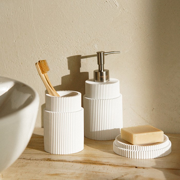 Элегантное сочетание пластика и полирезина обеспечивает долговечность и устойчивость к влаге, а минималистичный однотонный дизайн легко впишется в любой интерьер. Белый цвет изделий придаёт ощущение свежести и чистоты, делая вашу ванную комнату более просторной и светлой.