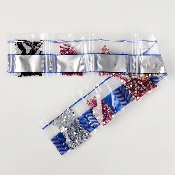 2. Из пакетика с номером, который соответствует схеме, отсыпьте в ёмкость немного стразов.
