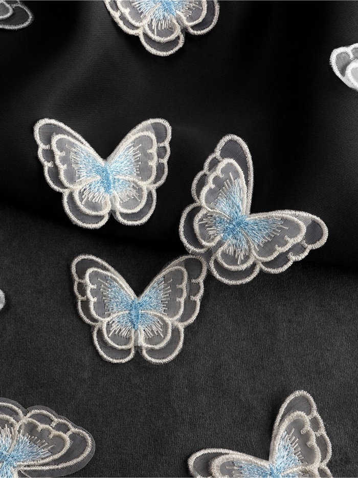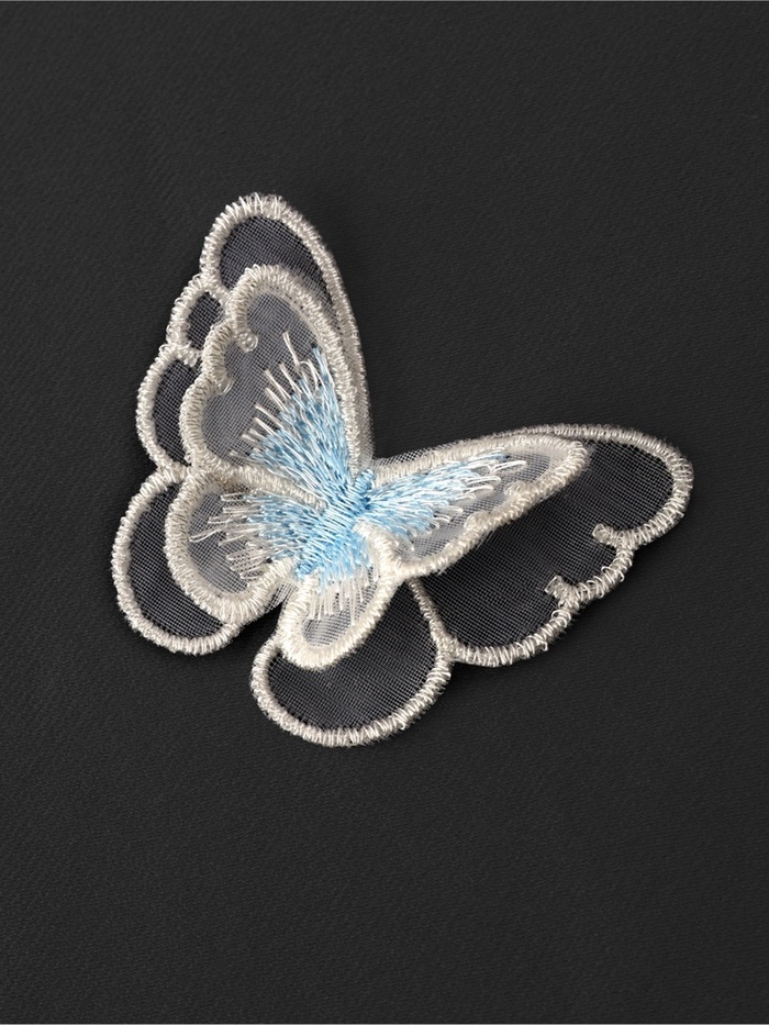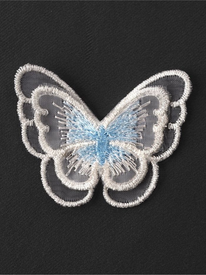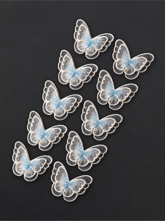 Оживите свои творческие проекты лёгким дуновением весны с этими воздушными аппликациями. Десять нежных текстильных бабочек из мягкого полиэстера в бело-голубой гамме станут изысканным украшением детской одежды, летних аксессуаров или предметов домашнего декора.