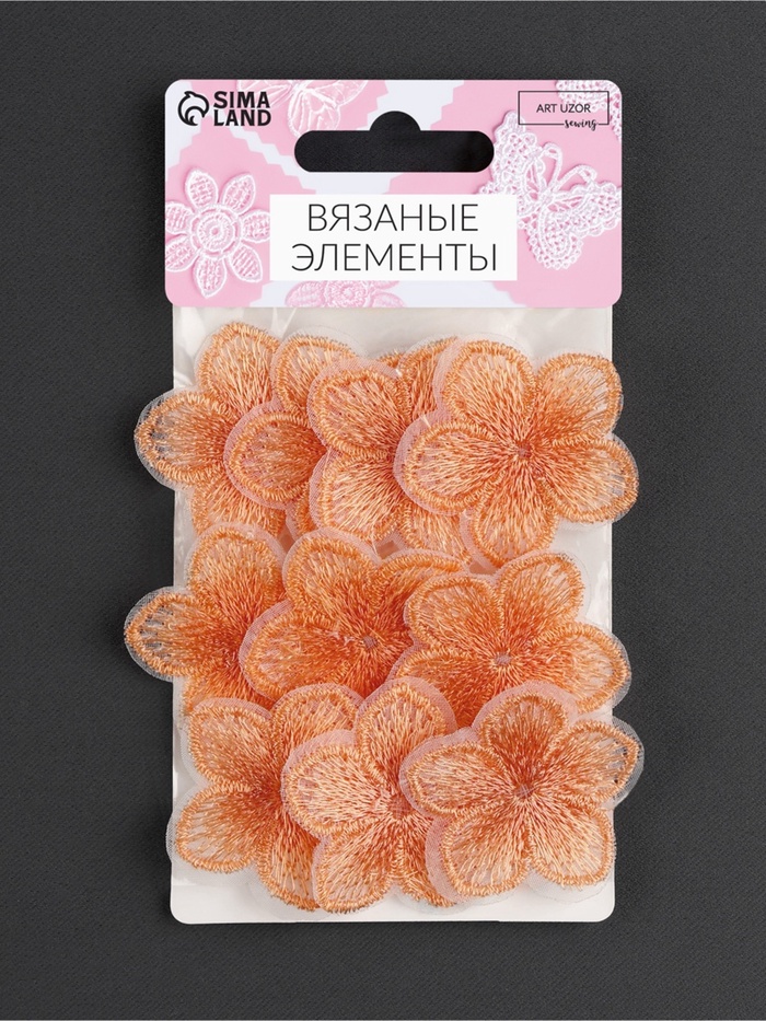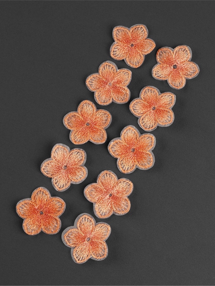 Яркие акценты для детской одежды! Текстильные цветы от Арт Узор — набор из 10 оранжевых аппликаций для создания солнечных образов. Каждый цветок размером 3.5×3.7 см добавит вещам летнего настроения.