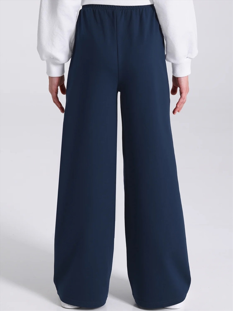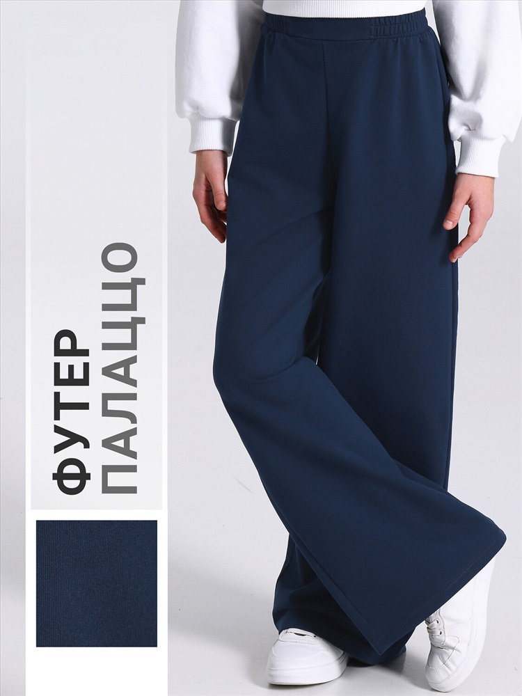 Широкие брюки палаццо для девочек выполнены из футера - плотного хлопкового полотна с лайкрой. Изделие без карманов на удобном эластичном поясе. Отличный вариант для школы и не только! Уход: только машинная стирка (руками не стирать!) при температуре 40 градусов, без предварительного замачивания. Ассортимент осенне-зимнего периода.