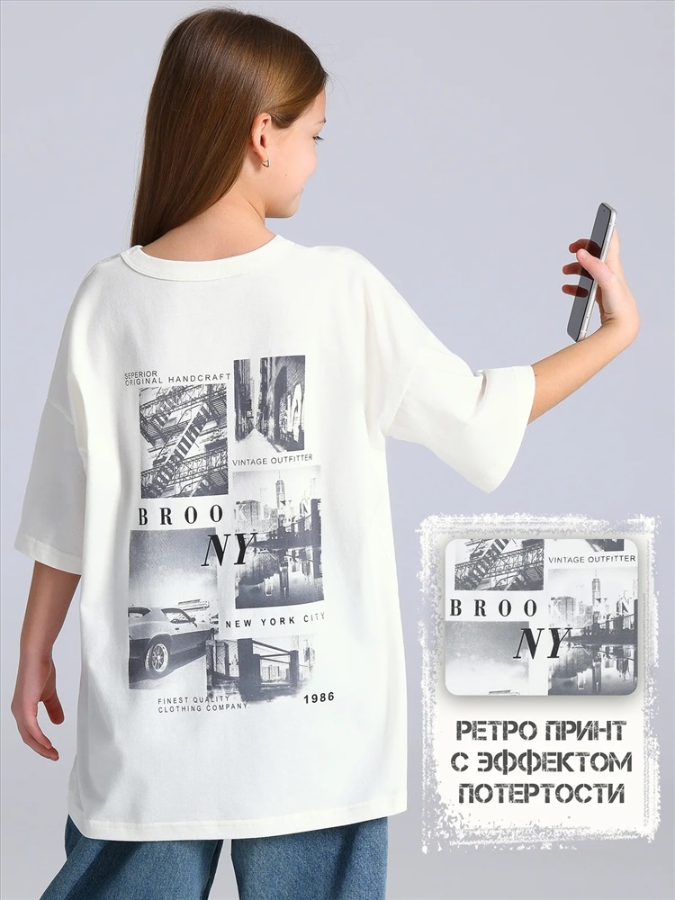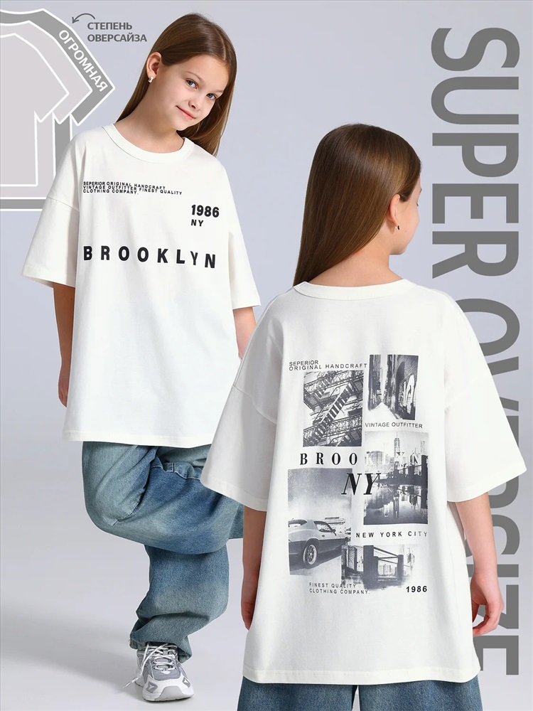Оверсайз футболка для девочки выполнена из кулира – легкого хлопкового полотна. Изделие прямого покроя, с короткими рукавами, со спущенной линией плеча, Круглый вырез горловины обработан эластичной бейкой из полотна компаньона, полочка и спинка украшены печатью. Уход: только машинная стирка (руками не стирать!) при температуре 40 градусов, без предварительного замачивания. Изделия с печатью и декором перед стиркой необходимо вывернуть на изнаночную сторону.