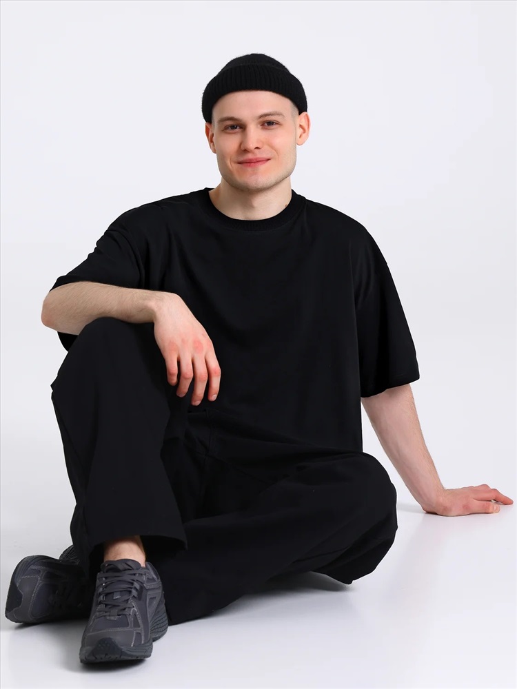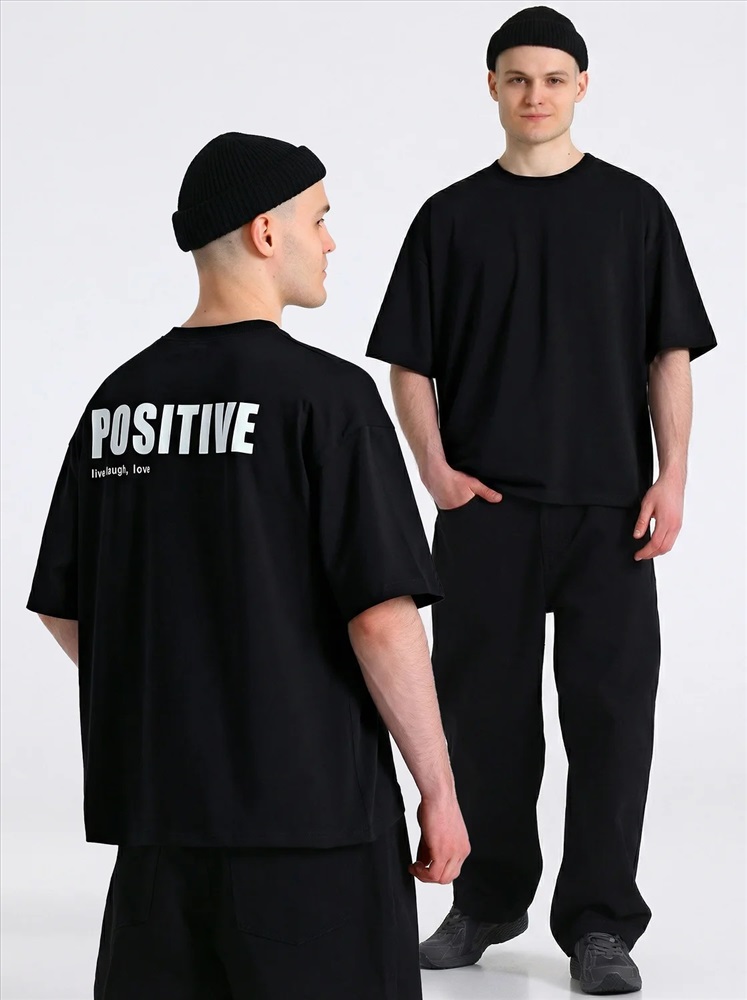 Мужская футболка выполнена из кулира - легкого хлопкового полотна с лайкрой. Изделие свободного кроя со спущенными плечами и круглым вырезом горловины. Спинка украшена печатью. Уход: только машинная стирка (руками не стирать!) при температуре 40 градусов, без предварительного замачивания. Изделия с печатью и декором перед стиркой необходимо вывернуть на изнаночную сторону.