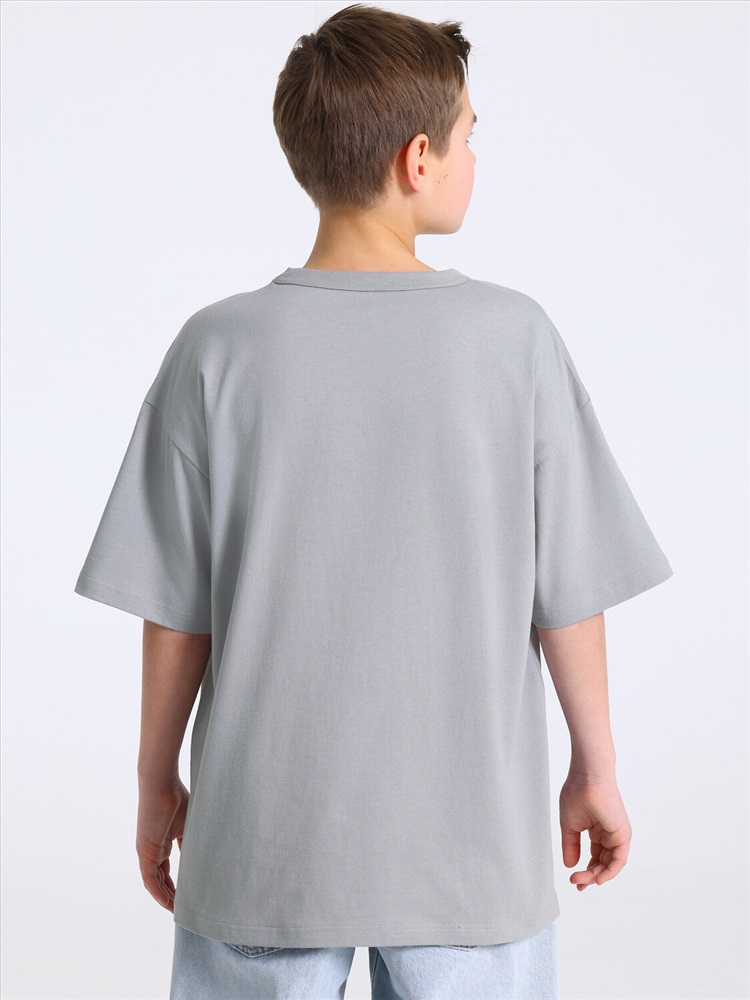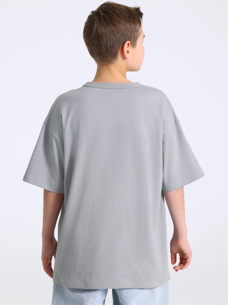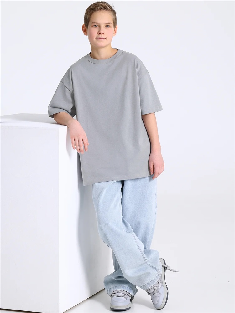 Оверсайз футболка для мальчика выполнена из кулира – легкого хлопокового полотна. Изделие прямого покроя, с короткими рукавами, со спущенной линией плеча. Круглый вырез горловины обработан эластичной бейкой из полотна компаньона. Уход: только машинная стирка (руками не стирать!) при температуре 40 градусов, без предварительного замачивания.