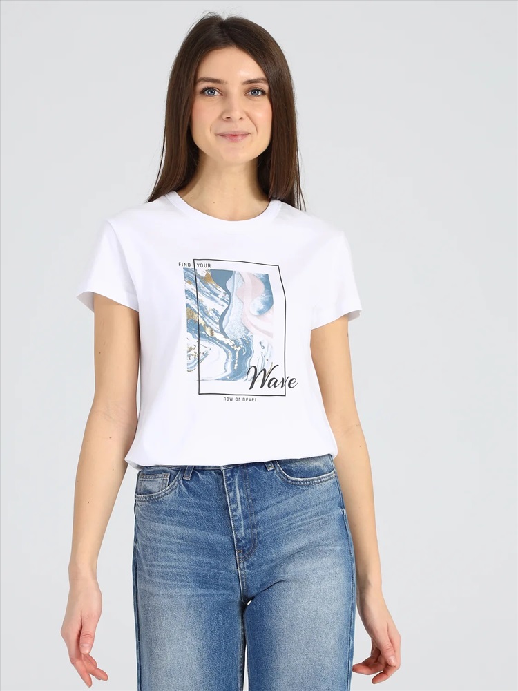 Российский размер: 42 Обхват груди: 84 Артикул поставщика: 1ЖДФК2657001 Ткань: кулир Состав: хлопок 100% Год: 2022 Страна: Россия Рост: 164 Футболка выполнена из легкого хлопкового полотна. Изделие свободного покроя с короткими рукавами и округлым вырезом горловины, украшено дизайнерским принтом. Уход: только машинная стирка (руками не стирать!) при температуре 40 градусов, без предварительного замачивания. Изделия с печатью перед стиркой необходимо вывернуть на изнаночную сторону. Комментарии к товару
