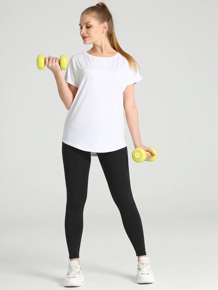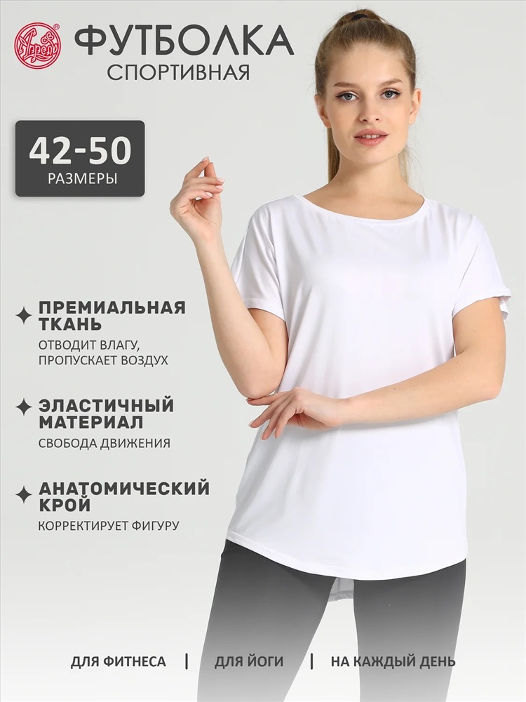 Стильная женская футболка выполнена из высокотехнологичного плотного спортивного трикотажа - отлично пропускает воздух, отводит влагу и не мнется. Изделие свободного силуэта с короткими цельнокроеными рукавами. Лучший выбор для занятий спортом! Уход: только деликатная машинная стирка (руками не стирать!) при температуре 40 градусов, без предварительного замачивания.