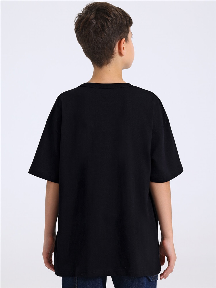 Оверсайз футболка для мальчика выполнена из кулира – легкого хлопокового полотна. Изделие прямого покроя, с короткими рукавами, со спущенной линией плеча. Круглый вырез горловины обработан эластичной бейкой из полотна компаньона. Уход: только машинная стирка (руками не стирать!) при температуре 40 градусов, без предварительного замачивания.