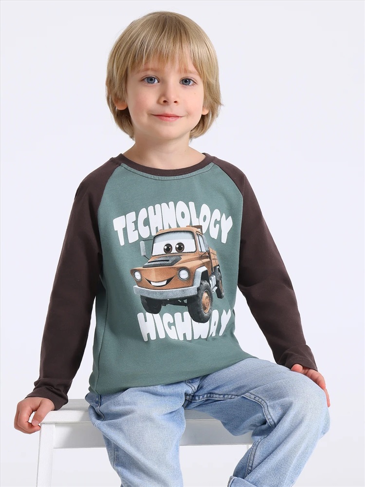 Лонгслив для мальчика выполнен из кулира – тонкого хлопкового полотна. Изделие прямого силуэта с длинными рукавами-реглан. Полочка украшена печатью. Уход: только машинная стирка (руками не стирать!) при температуре 40 градусов, без предварительного замачивания. Изделия с печатью перед стиркой необходимо вывернуть на изнаночную сторону.